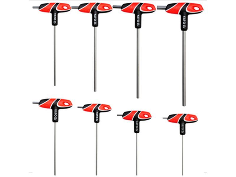 Набір шестигранних ключів Hex YATO Т-подібних із кулею призначений для відкручування та закручування гвинтів, болтів, які мають внутрішній шестигранник. Ключі виготовлені із сталі S2.