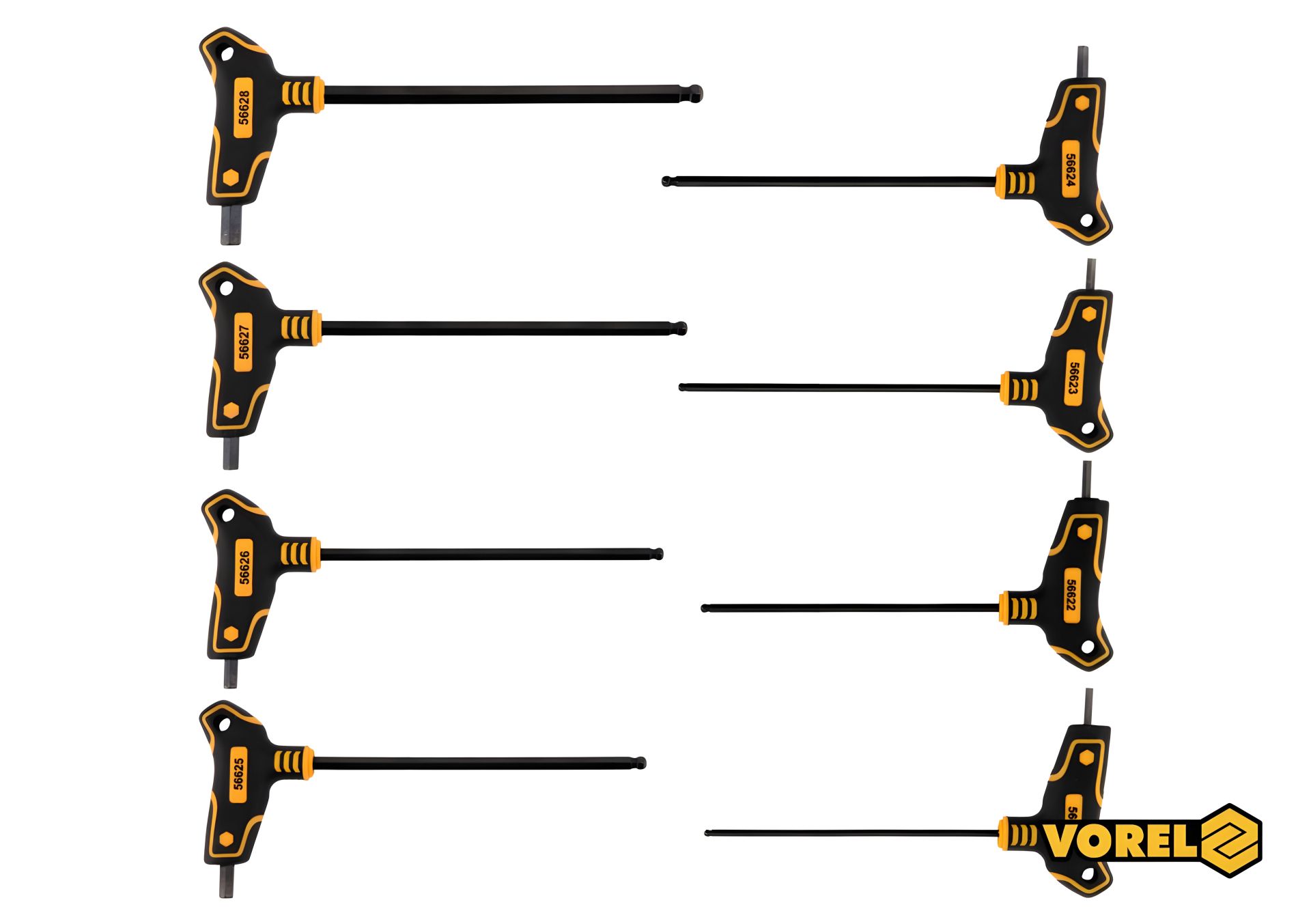 Набір шестигранних Т-подібних ключів з кульковим HEX 2.5-10 мм наконечником, 100-200 мм, 8 шт Vorel 56629