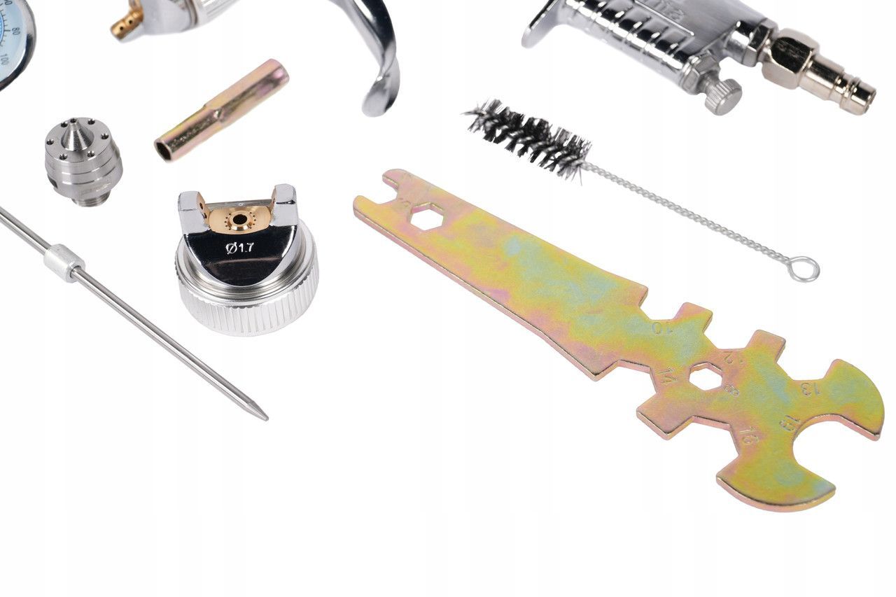 Набір пневмофарбувальний H-827 з регулятором повітря, тип HVLP, верхній пластиковий бачок, діаметр форсунок 1,3/1,7 AUARITA KIT-H-827-1.3-1.7