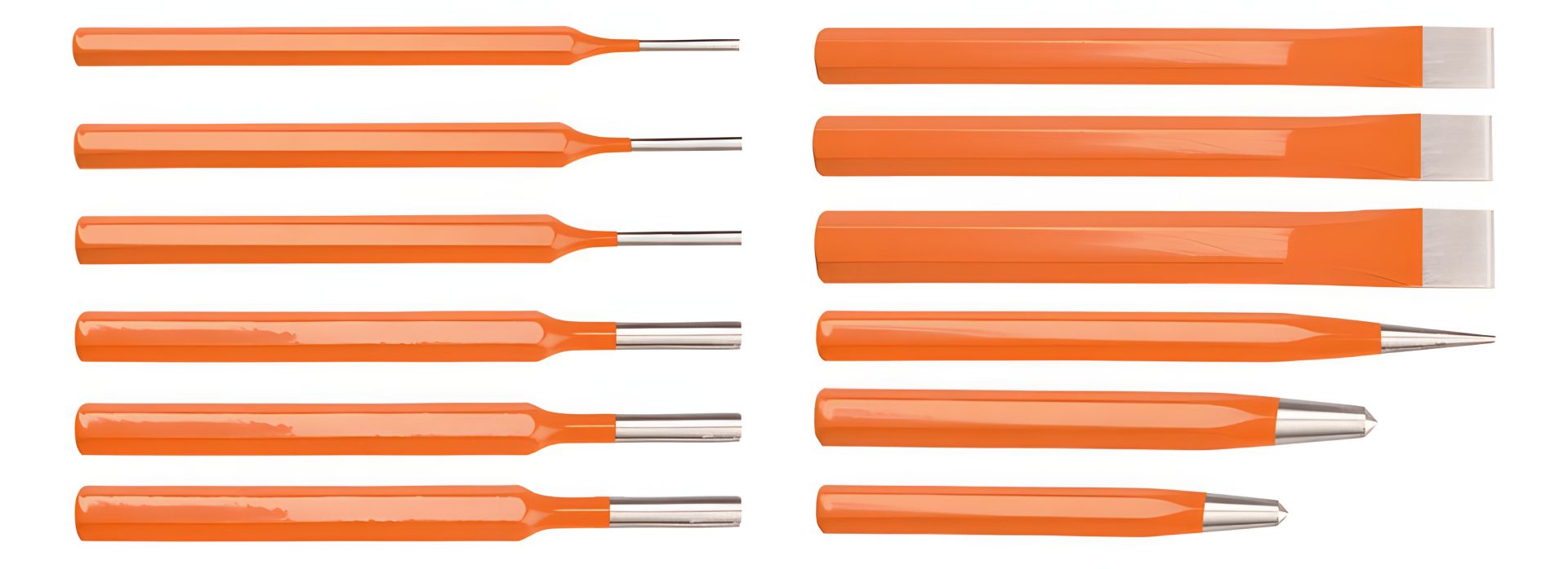 Набір кернерів і пробійників NEO включає 6 зубил, 3 пробійники, конусне зубило та 2 кернери. Весь інструмент виготовлений із високоякісної хромованадієвої сталі, що забезпечує довгий термін служби інструменту. Інструмент упакований у зручну пластмасову коробочку, що полегшує транспорт та зберігання. Бренд NEO виправдовує очікування фахівців.