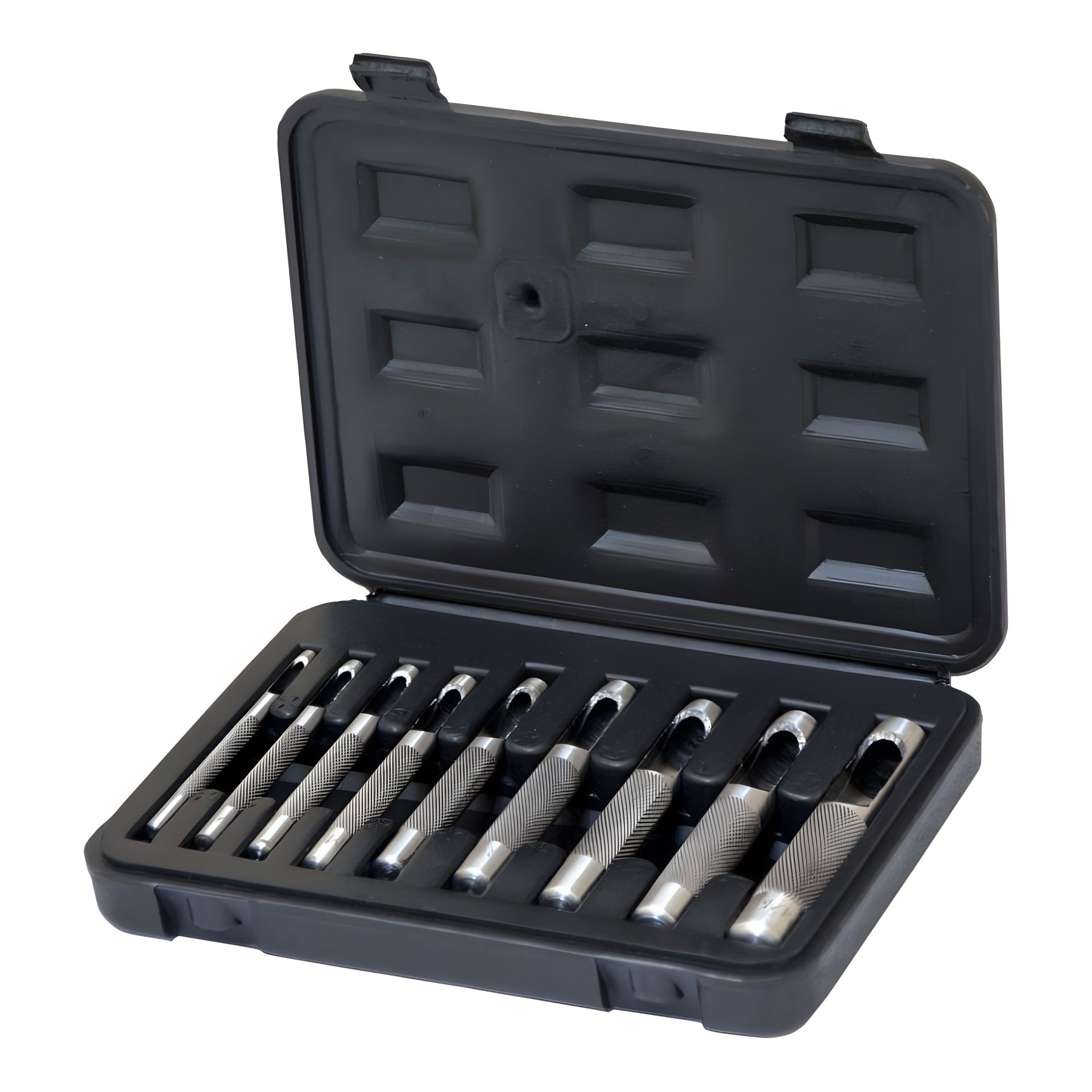 Набір просічок 9од 3-12мм (кейс) SIGMA (4328411) застосовується для вирубки круглих отворів різного діаметру в пароніті, шкірі, тканині, пластику та дереві. Використання просічок дозволяє отримати рівні та гладкі краї біля отворів. Просічення виготовлені з високоякісної вуглецевої сталі. Робочі частини загартовані. Просічки мають насічку, виготовлену методом накатки, що оберігає долоню від прослизання. Набір поставляється у пластиковому кейсі.