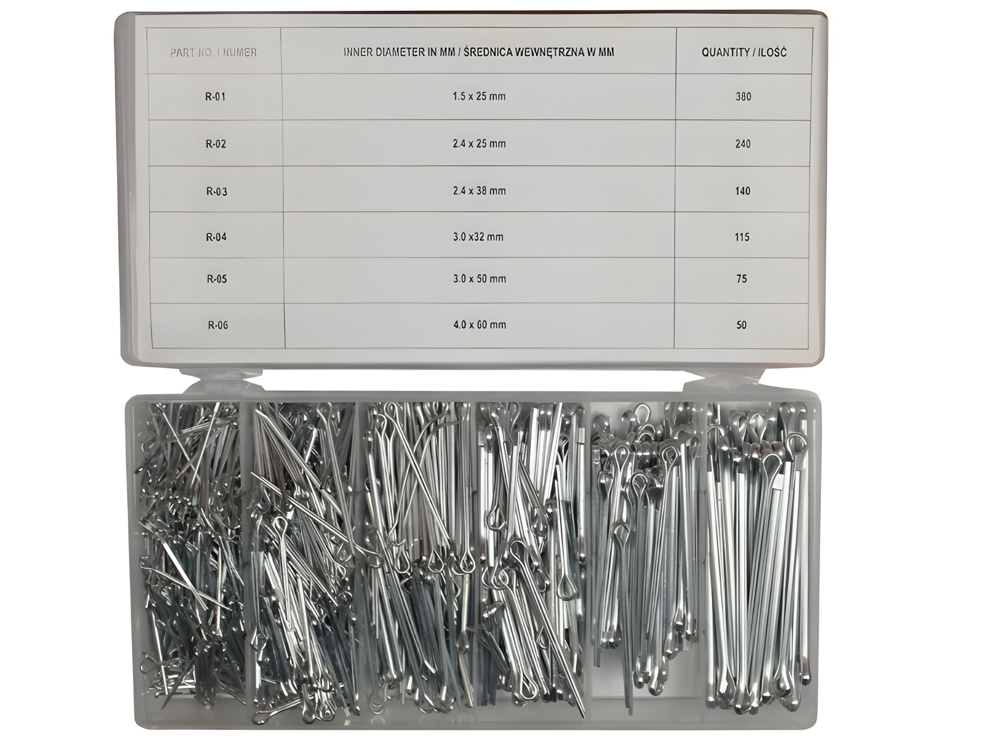 Шплінти прямі різних розмірів YATO набір 1000 шт.