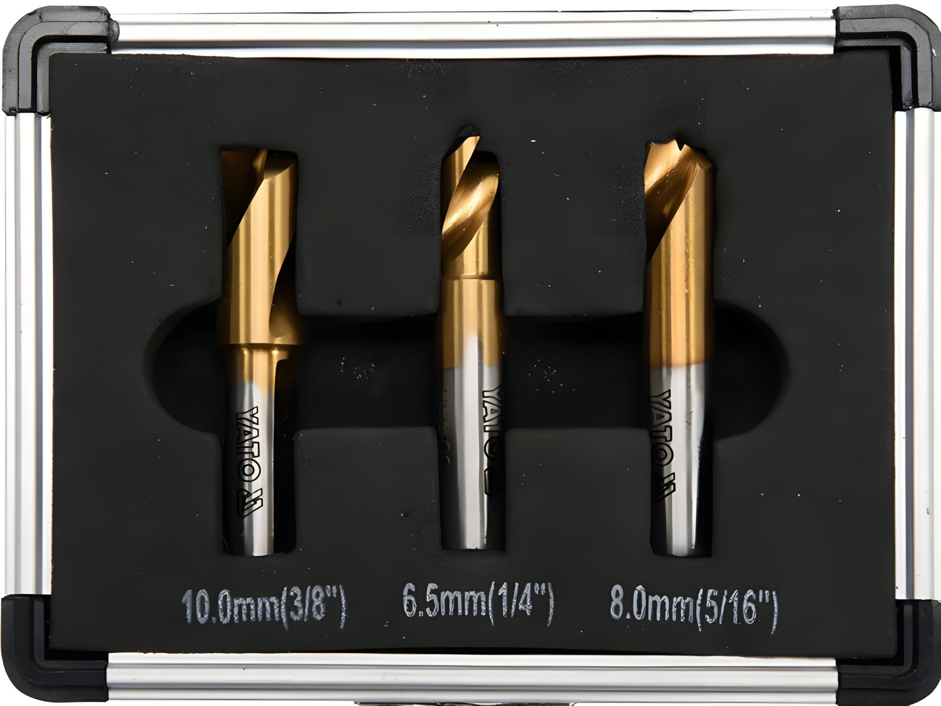 Свердла для точкового зварювання HSS YATO діаметрами 6.5, 8, 10 мм, набір, 3 шт. у футлярі
