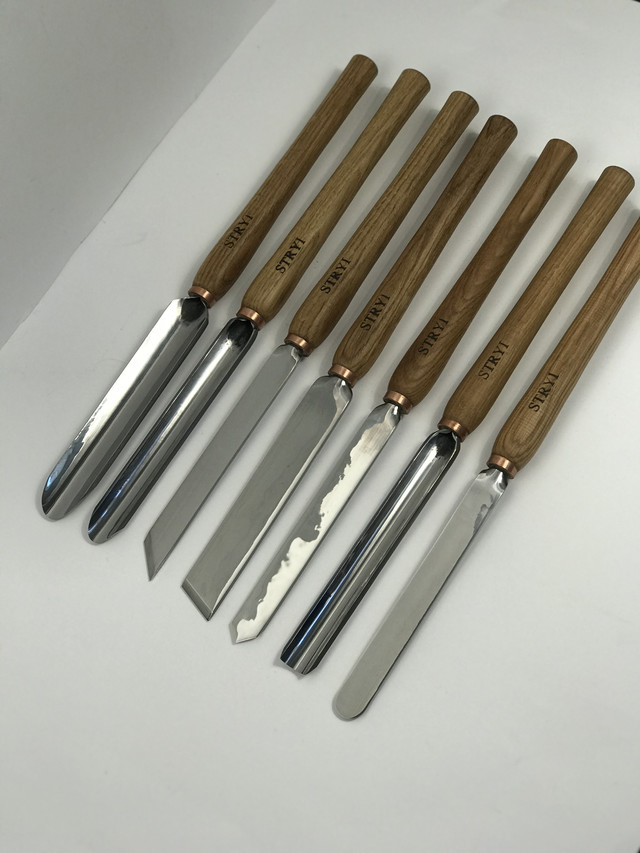 У цьому наборі зібрано все необхідне, щоб при отриманні інструментів Ви відразу приступили до токарної обробки деревини: 2 види реєра, 2 види мейселя, відрізний різець, плоский напівкруглий скребок і обрізний різець.