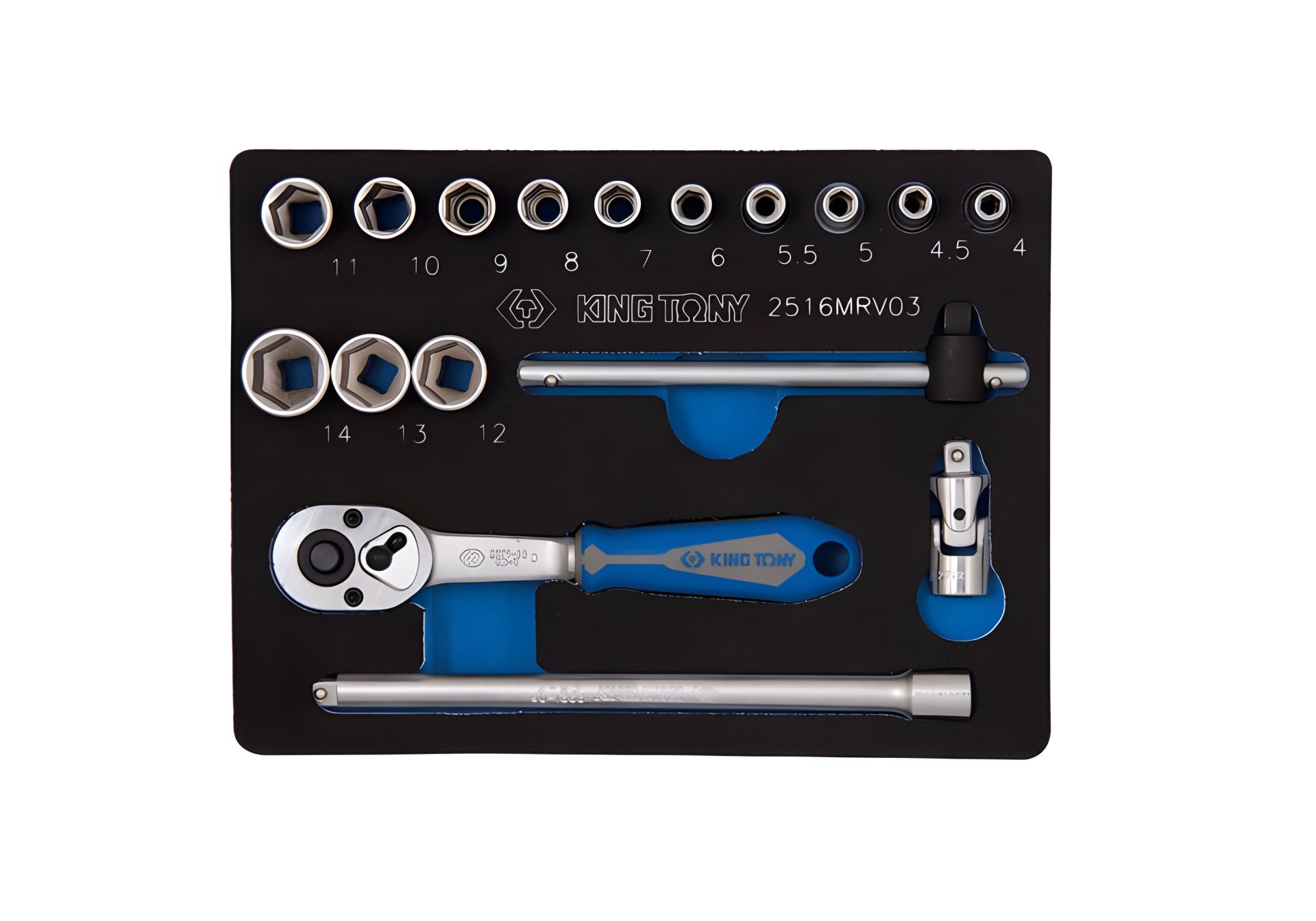 Набір торцевих головок 1/4"DR з EVA ложементом, 17 шт. - KING TONY (9-2516MRV03)