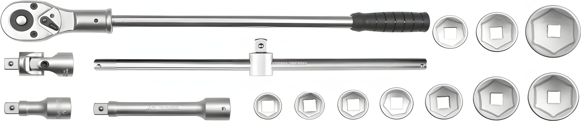 Набір торцевих головок YATO – професійний набір інструменту для фахівців, що проводять ремонт та обслуговування транспортних засобів, а також домашніх робіт. Виготовлений із високоміцної хром-ванадієвої сталі. У комплекті: - головки торцеві 3/4": 30, 32, 34, 36, 38, 41, 46, 50, 55, 60 мм, ключ тріскачковий 3/4" довжиною 500 мм, комір Т-подібний 3/4" 510 мм, 2 карданний шарнір 3/4" довжиною 106 мм.