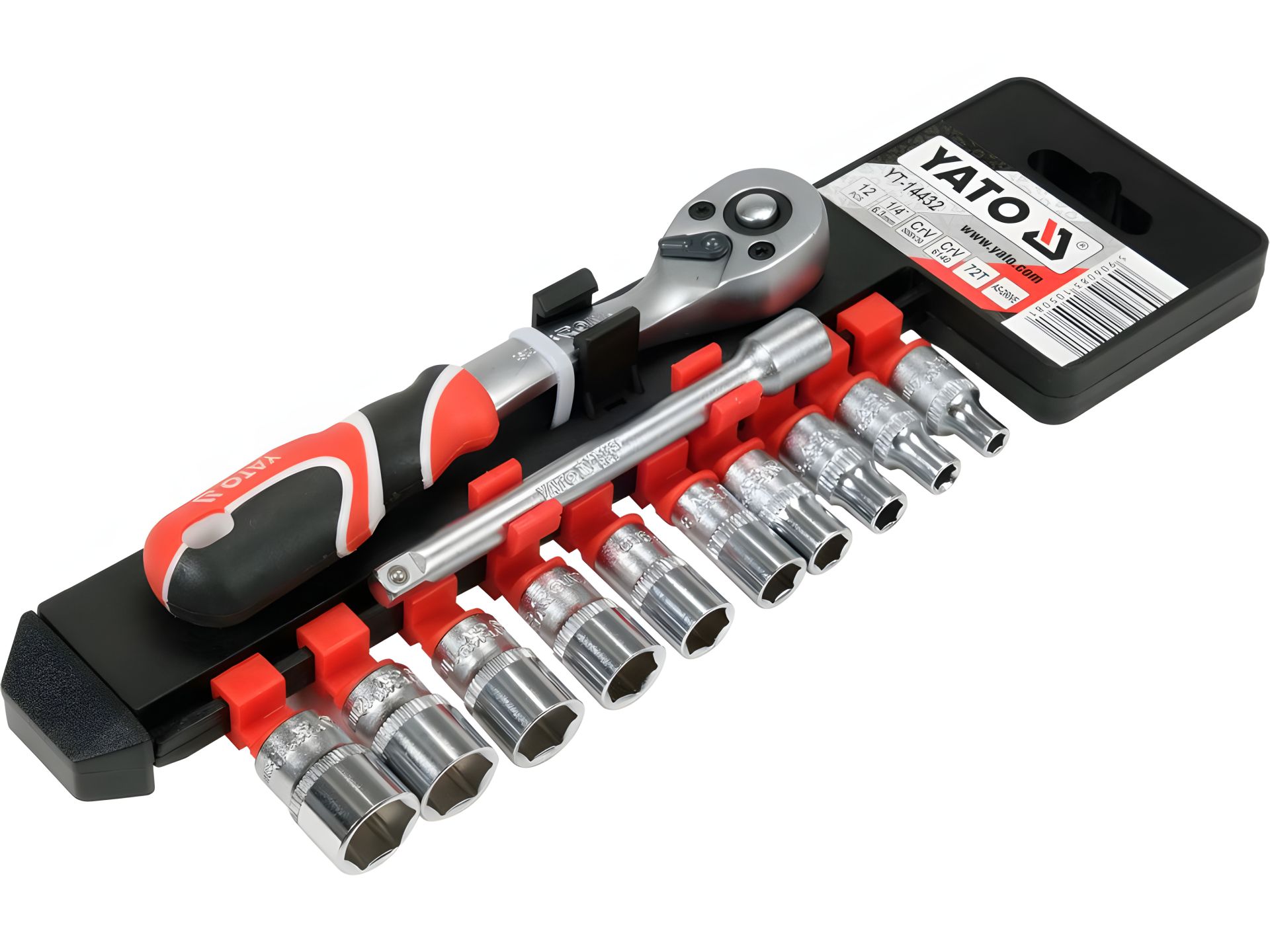 Набір торцевих головок Cr-Van з тріщаткою 1/4" квадрат, 12 шт Yato YT-14432