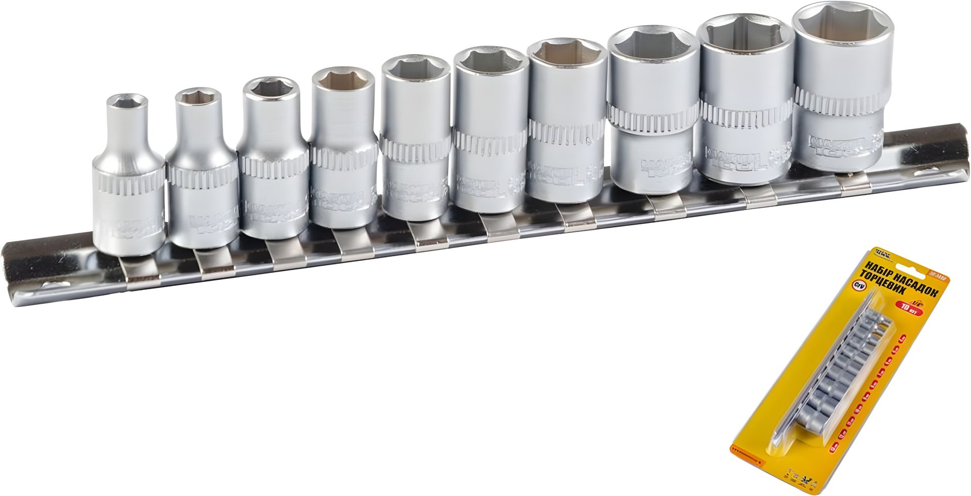 • Торцеві головки 6-гранні (¼"): 4, 5, 6, 7, 8, 9, 10, 11, 12, 13 мм