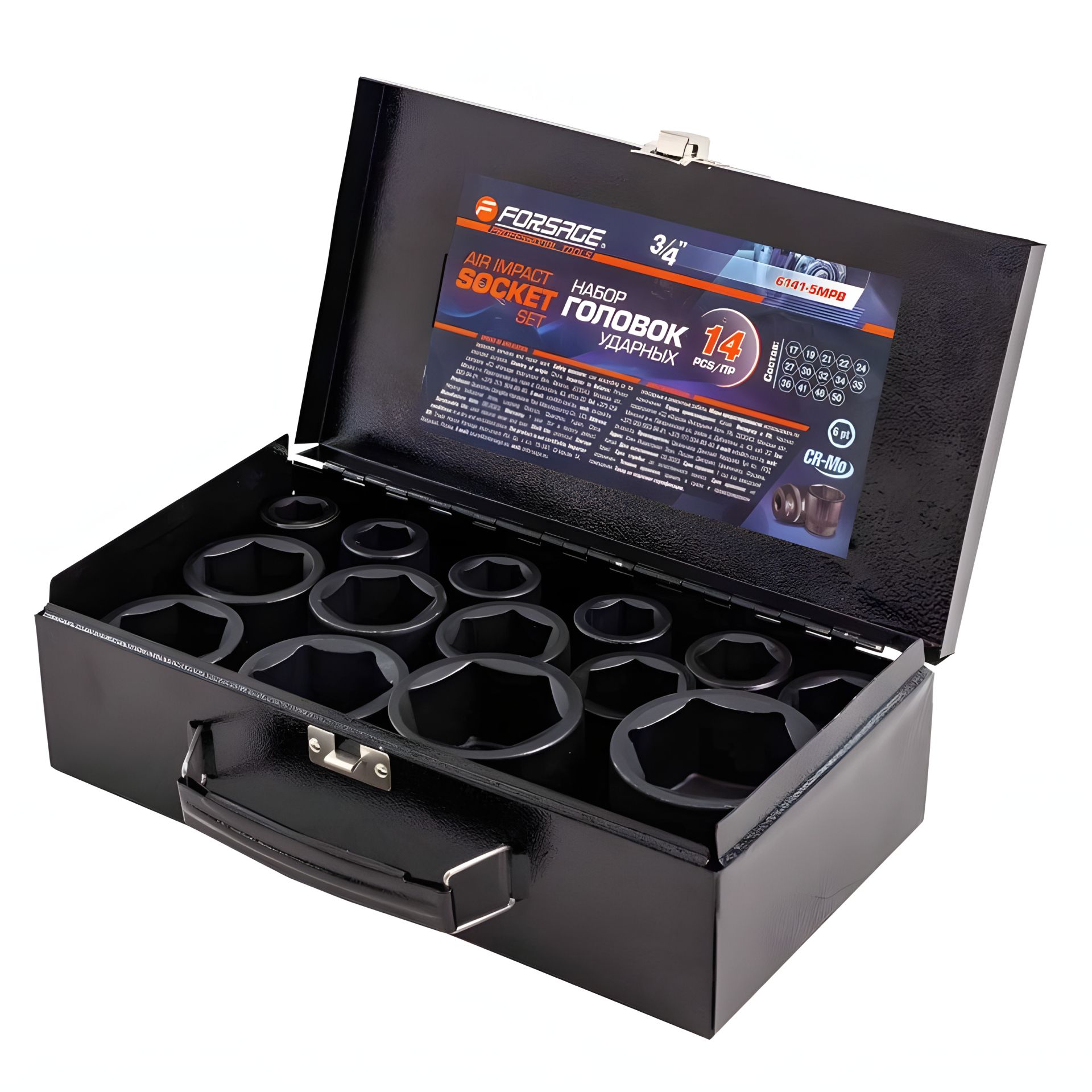 Набір ударних головок 3/4" 14 предметів(17,19,21,22,24,27,30,32,34,35,36,41,46,50) в кейсі FORSAGE F-6141-5MPB