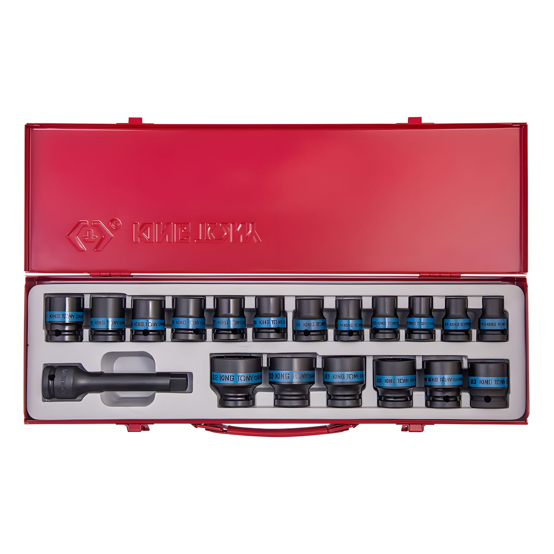 . Комплектація: Торцеві головки KING TONY розміри: 10, 11, 12, 13, 14, 15, 16, 17, 18, 19, 21, 22, 23, 24, 26, 27, 30, 32 мм. Подовжувач 1/2" 125 мм.