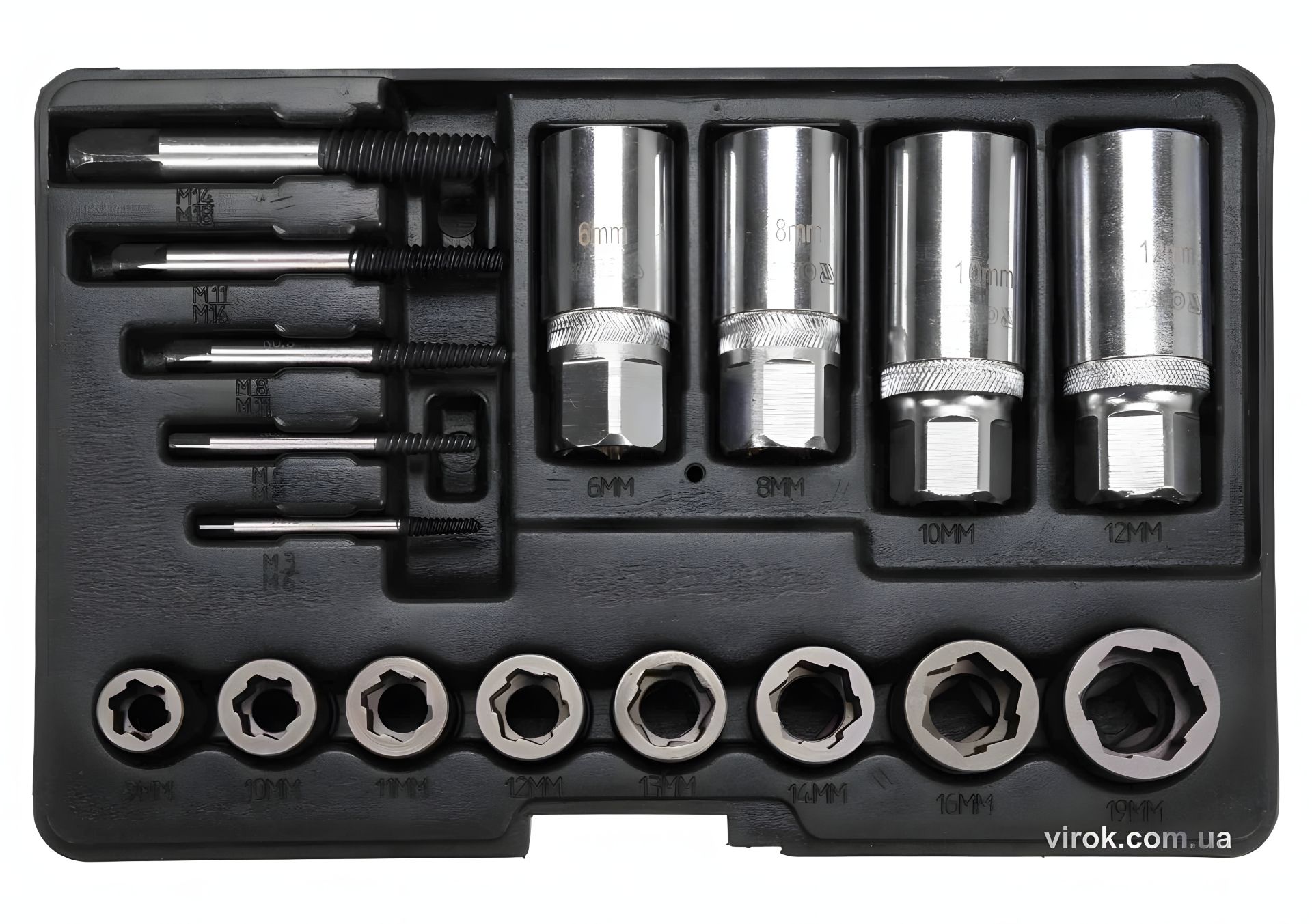 Набір засобів для видалення гвинтів, що вийшли з ладу YATO: 3/8" і 1/2", CrV і CrMo 17 шт