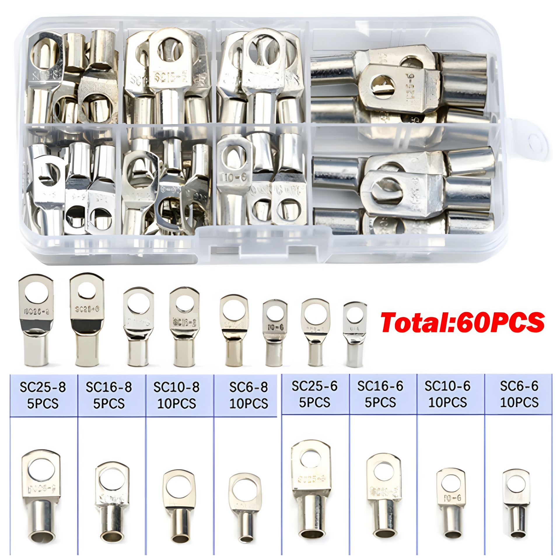 Набір мідних калюжених наконечників для кабелю 60 шт.