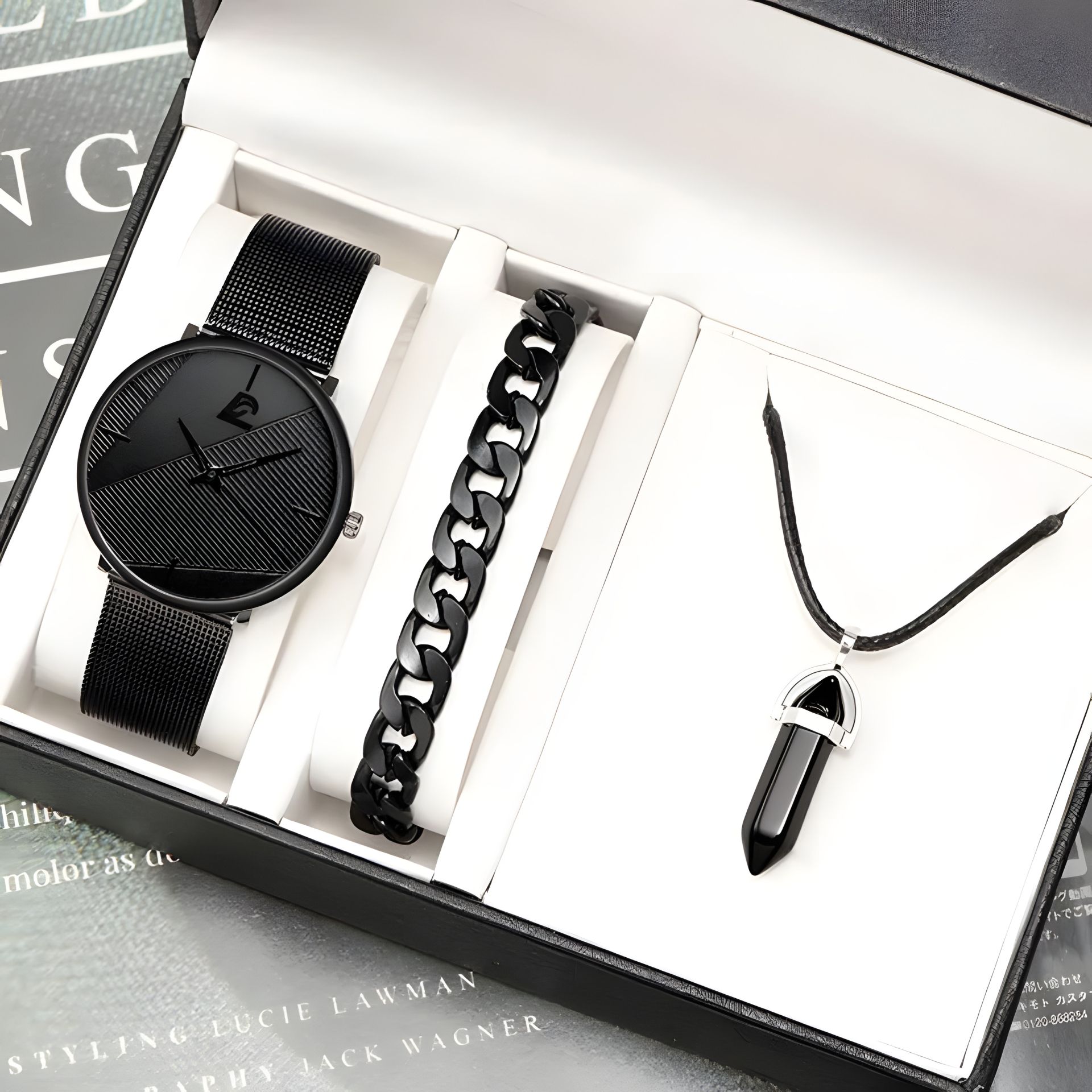 Подарунковий набір кварцовий годинник, браслет, кулон чорний