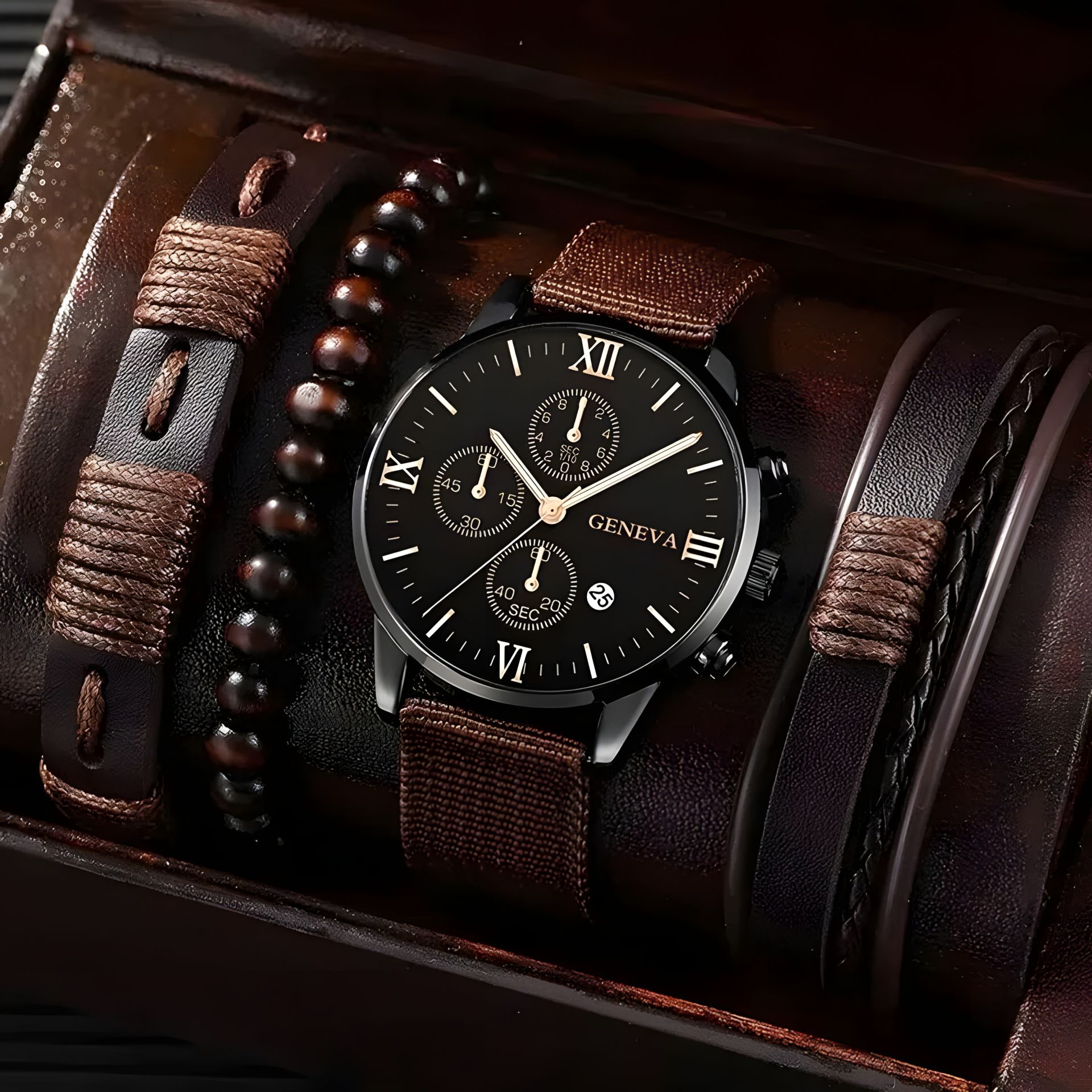 Набір подарунковий кварцовий годинник браслети бісер коричневі.
