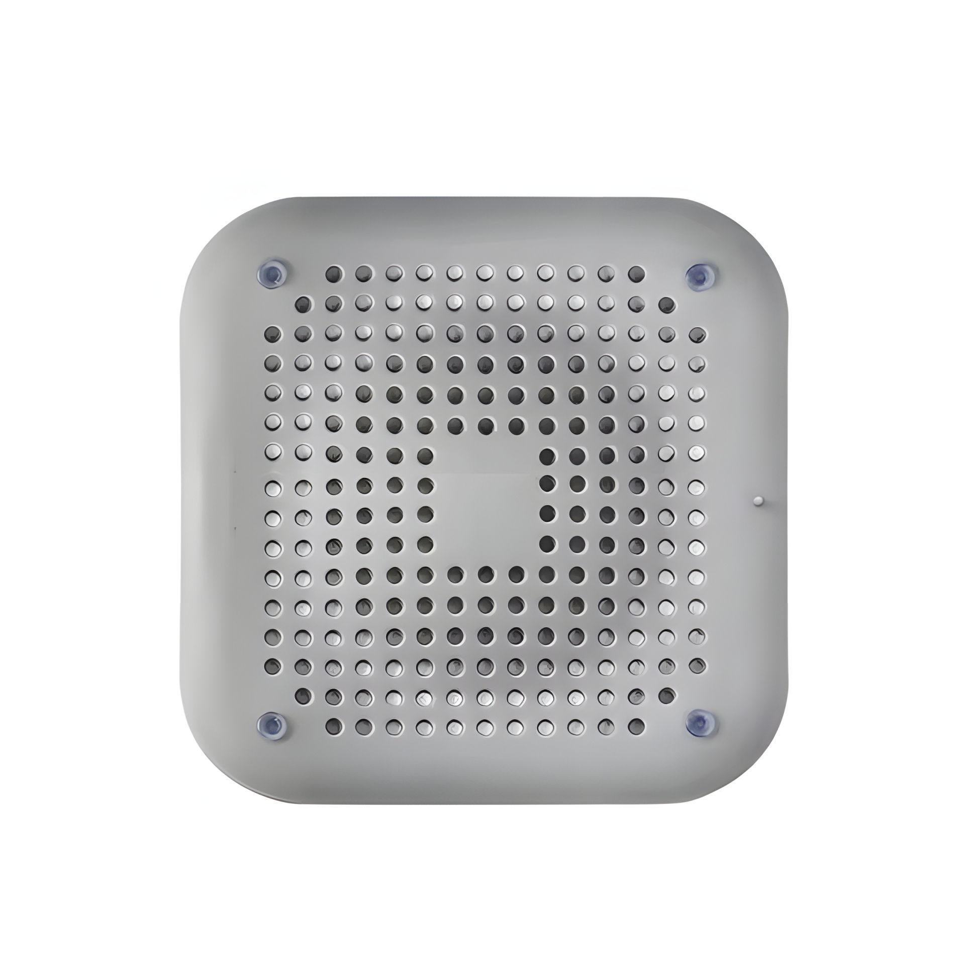 Силіконова накладка-решітка для зливу ванни, затримує волосся та сміття, на присосках, 145x145mm, сіра