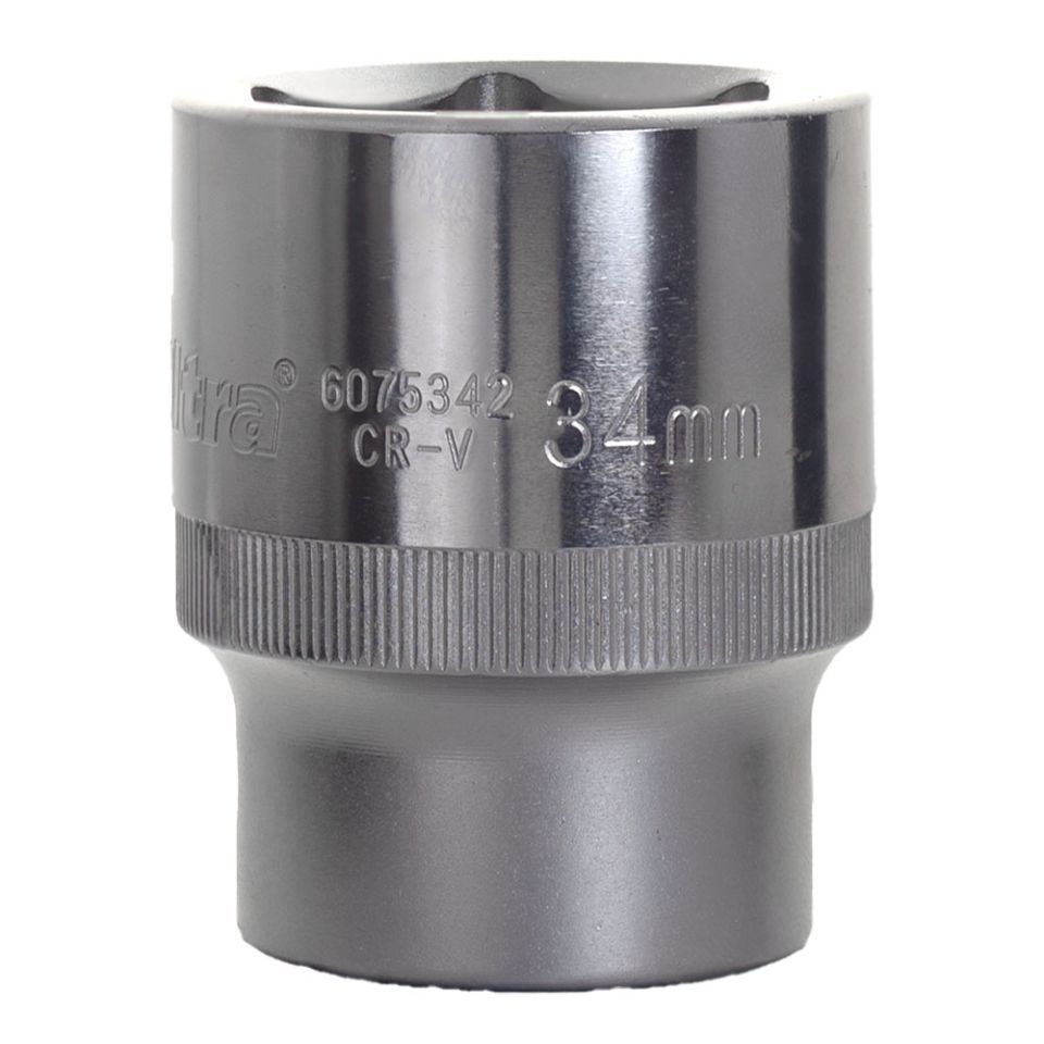 Насадка шестигранна 3/4" 34мм CrV ULTRA (6075342) це змінна робоча насадка збірного слюсарно-монтажного інструменту для з'єднання або роз'єднання різьбових з'єднань шляхом закручування або розкручування гайок, болтів та інших виробів для кріплення з відповідним типом голів.