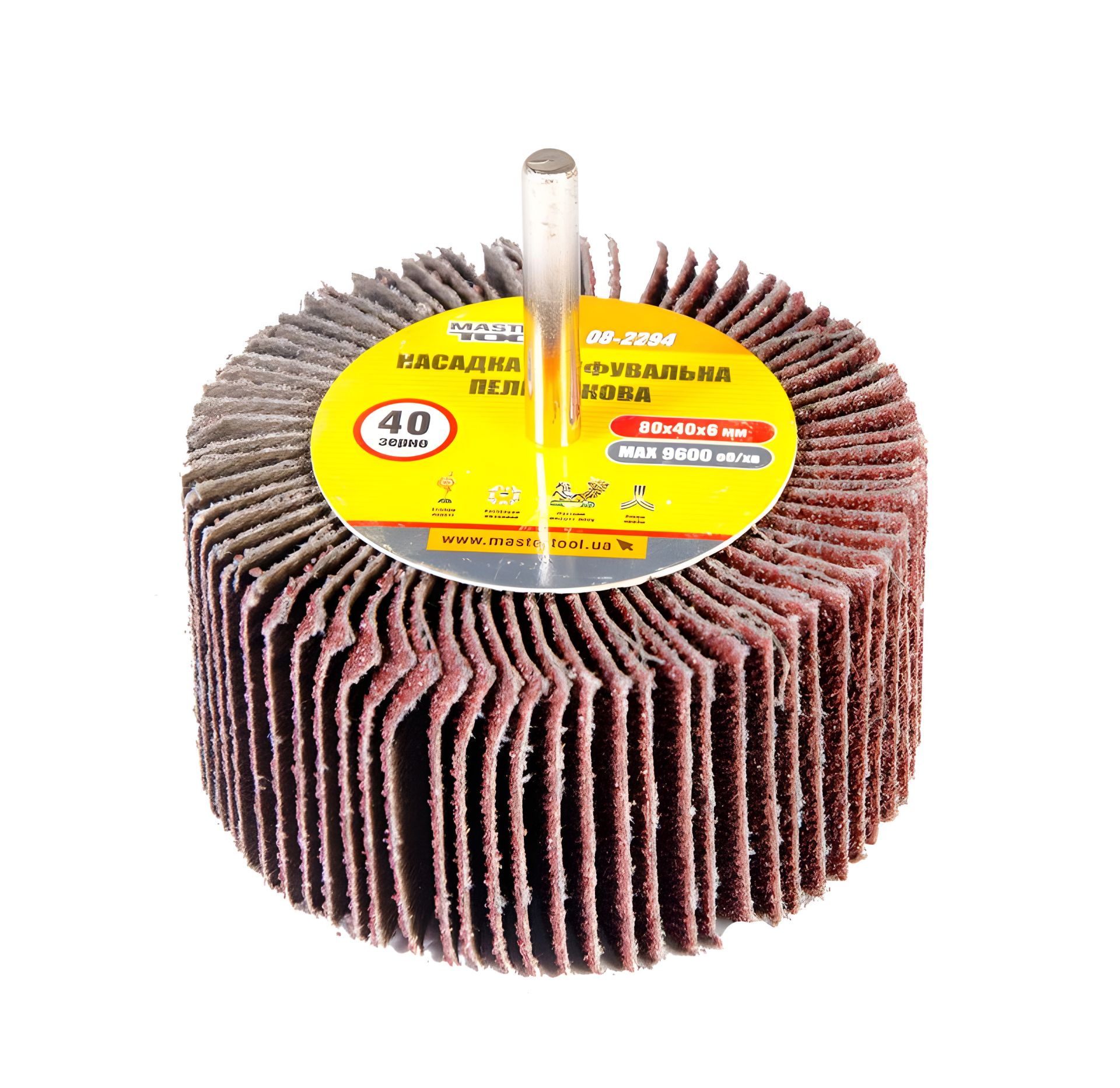 Шліфувальна насадка пелюсткова зерно 40 80х40 мм зі стрижнем 6 мм від MASTERTOOL 08-2294