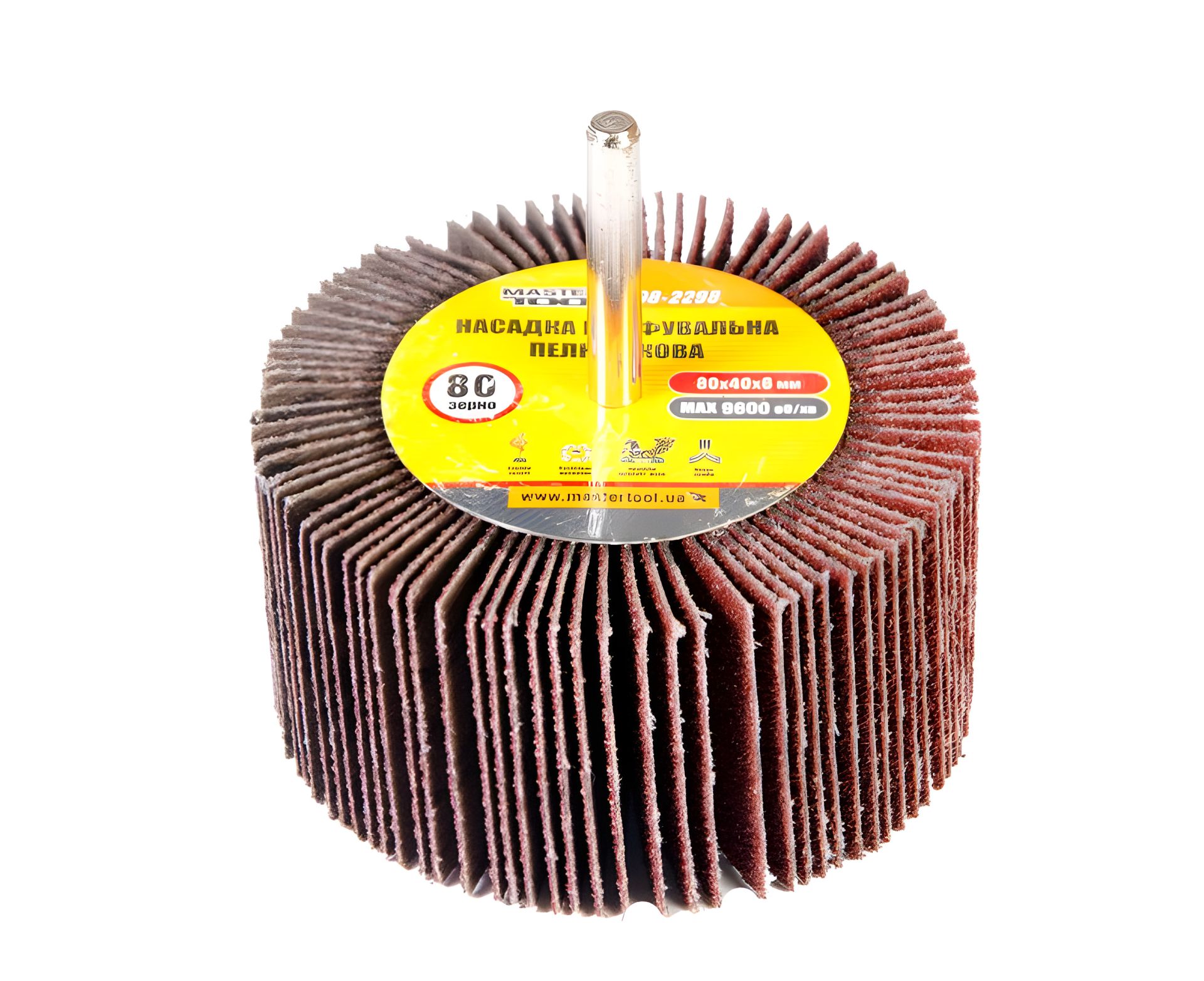 Пелюсткова насадка-шліфувальник зерно 80, 80х40 мм, зі стрижнем 6 мм, MASTERTOOL 08-2298