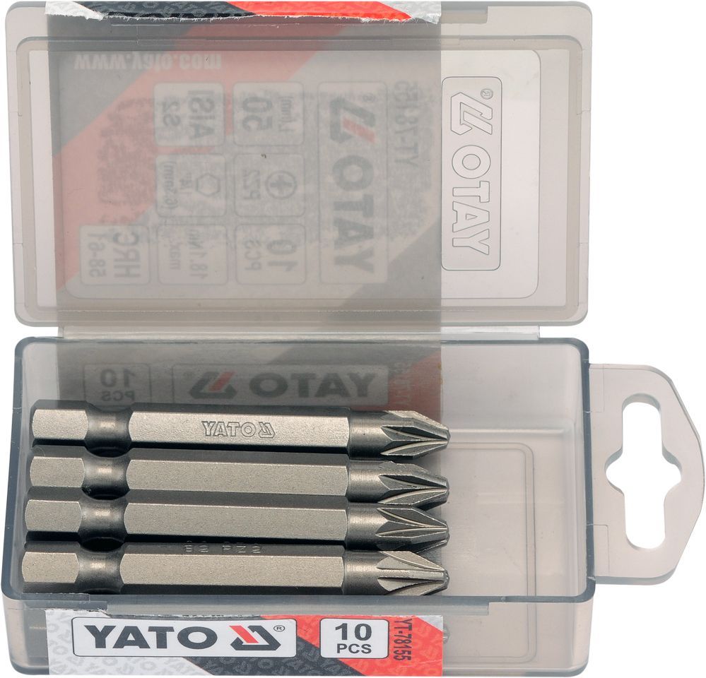 Насадка викрутка "Pozidriv" PZ2 x 50 мм HEX 1/4" 10 шт Yato YT-78155