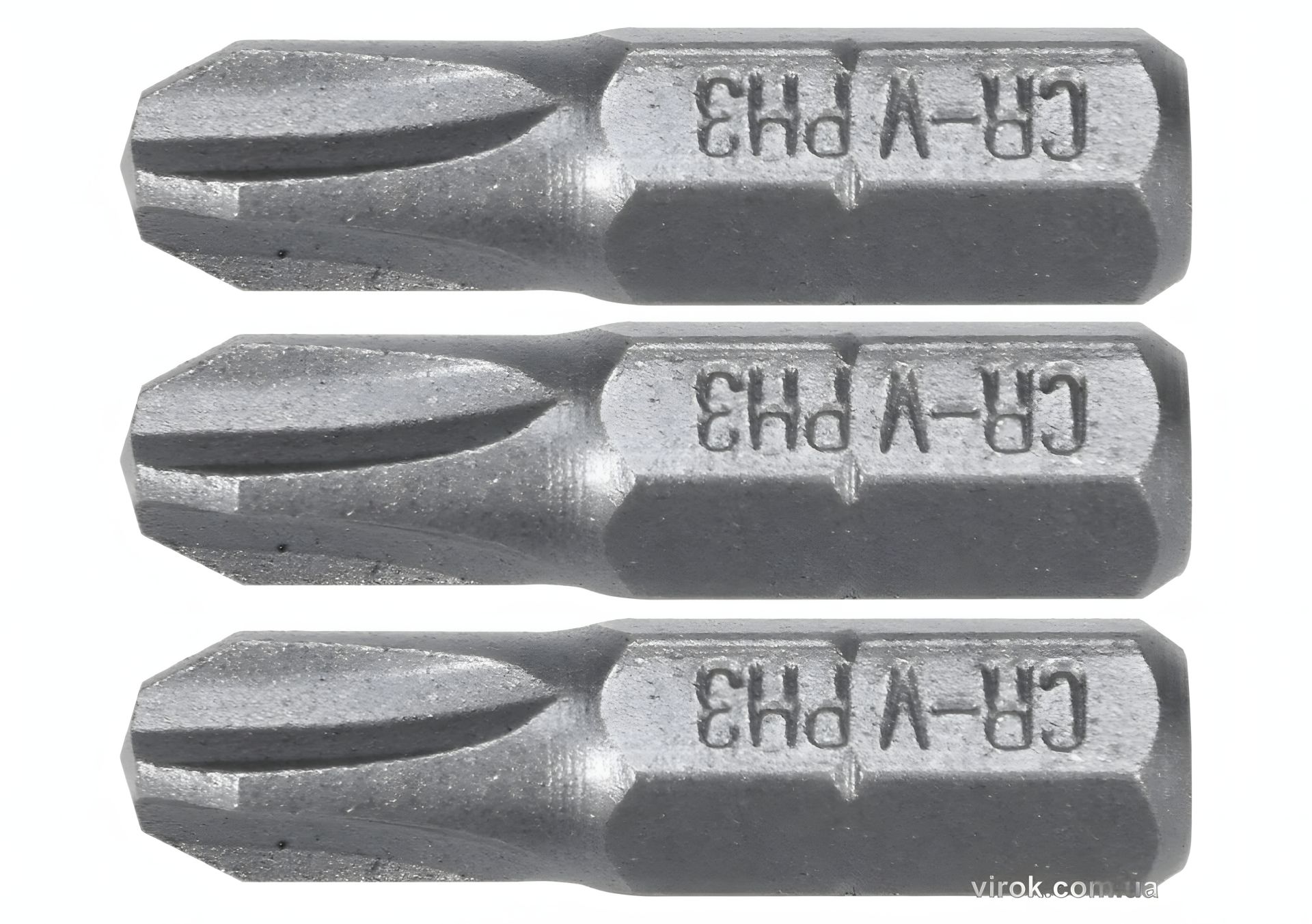 Викруткові насадки "Phillips" PH1 PH2 PH3 x 25 мм HEX 1/4", Cr-V, 3 шт від STHOR Vorel 65461