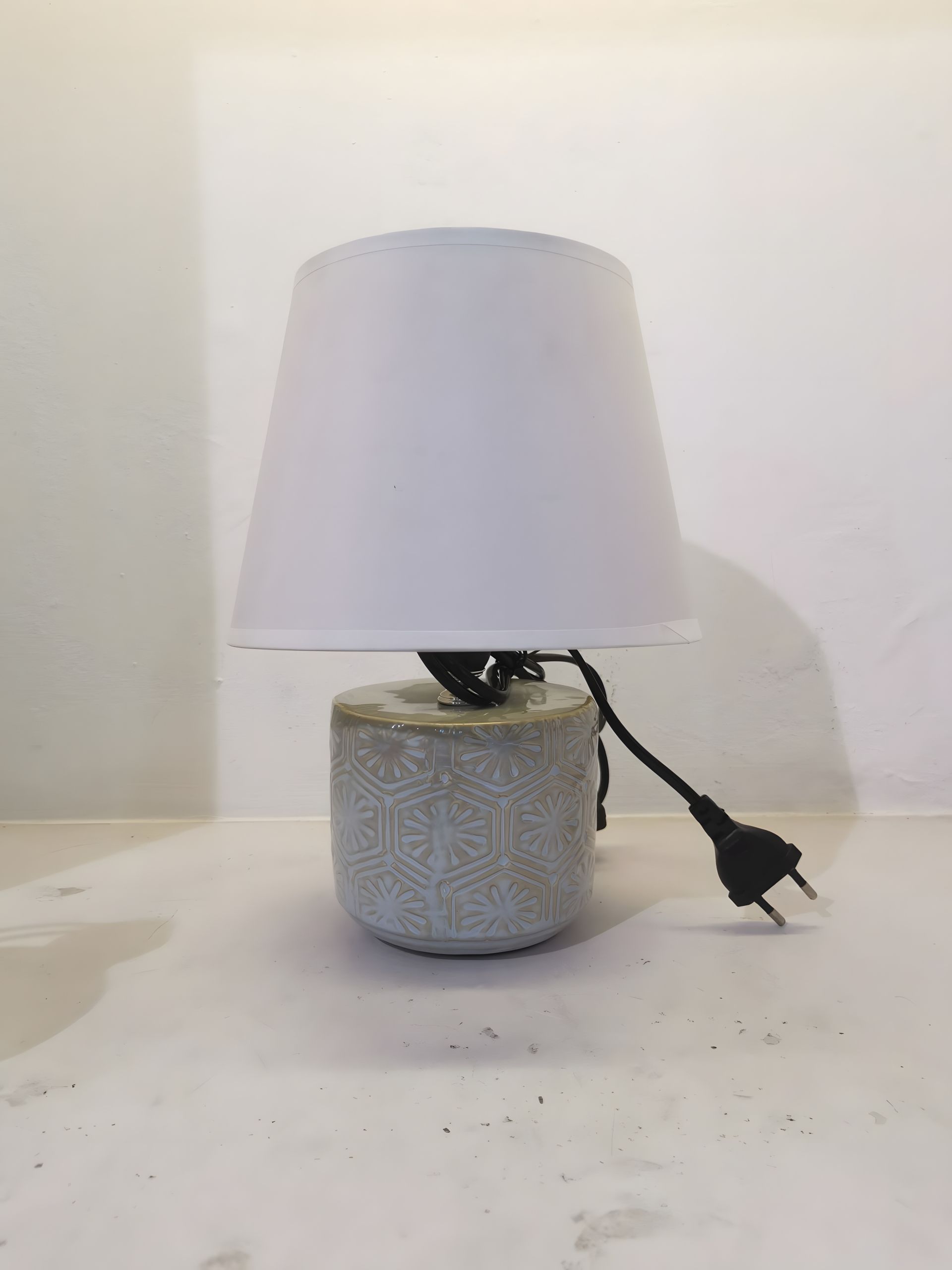 Основу лампи виготовлено з кераміки, що додає їй стійкості та довговічності. Її лаконічна форма та текстурний декор надають виробу особливого шарму, роблячи його не лише функціональним джерелом світла, а й вишуканим елементом декору.