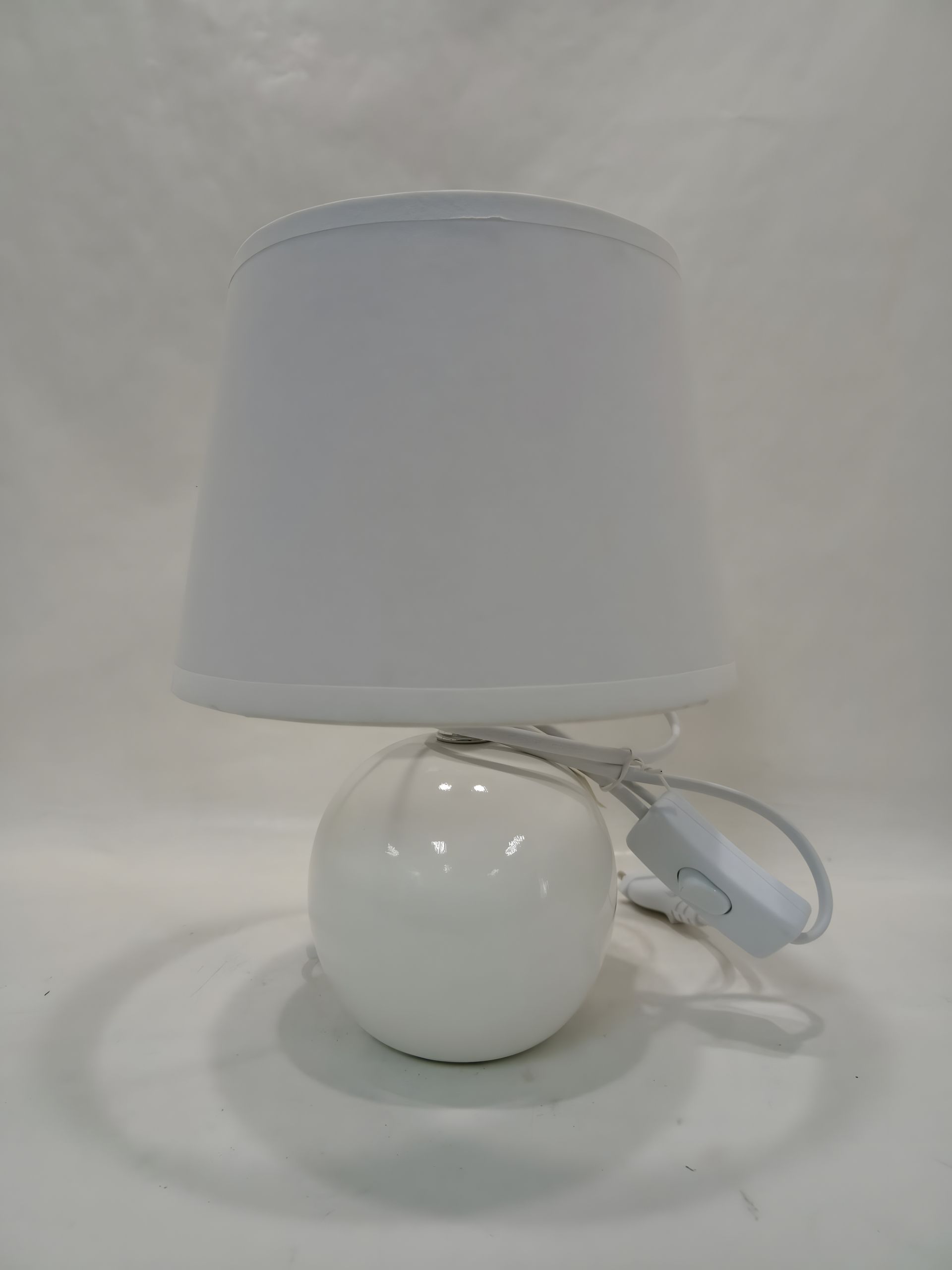 Матеріал: керамічний каркас та текстильний абажур білого кольору.