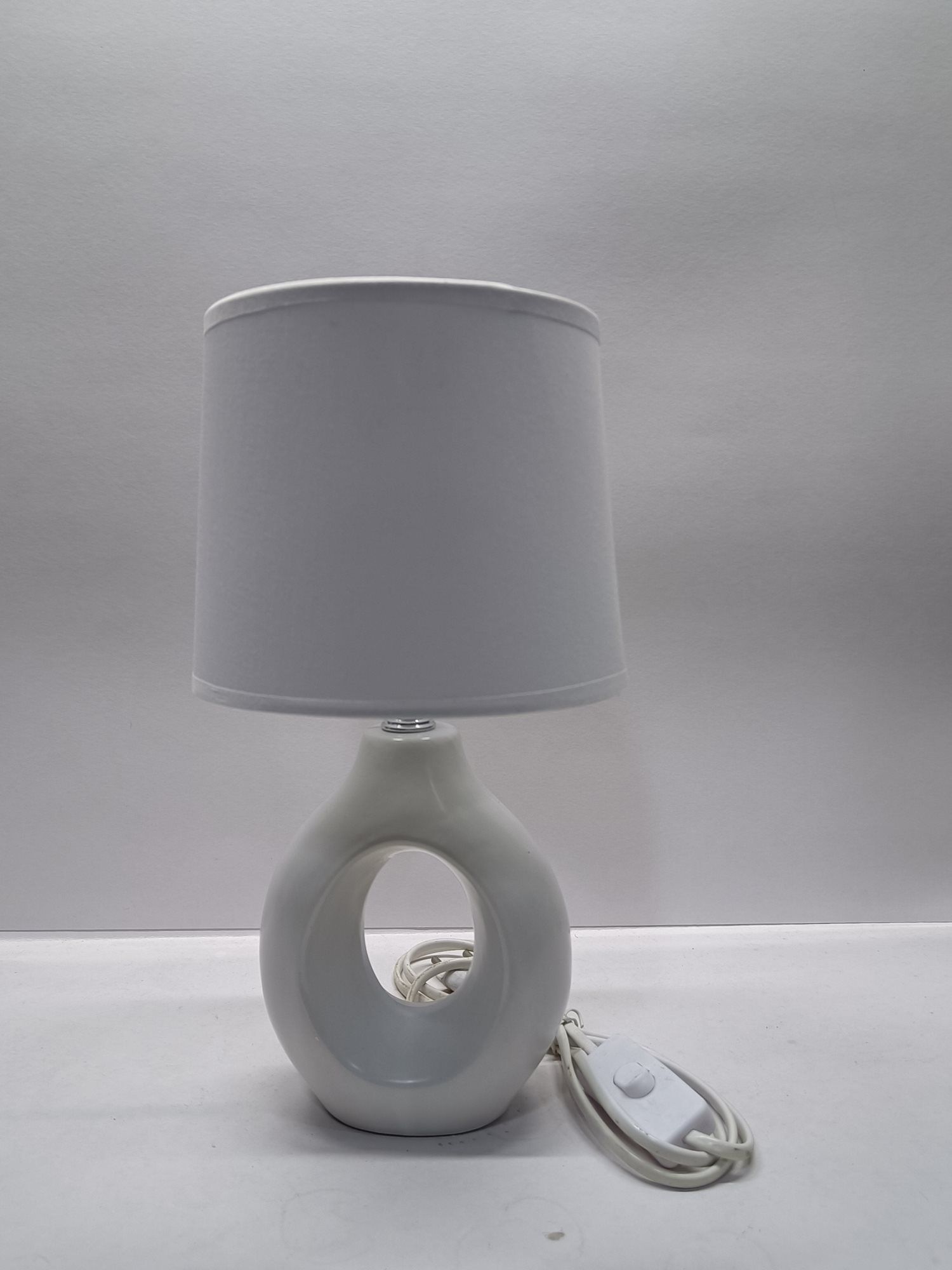 Матеріал: керамічний каркас та текстильний абажур білого кольору.