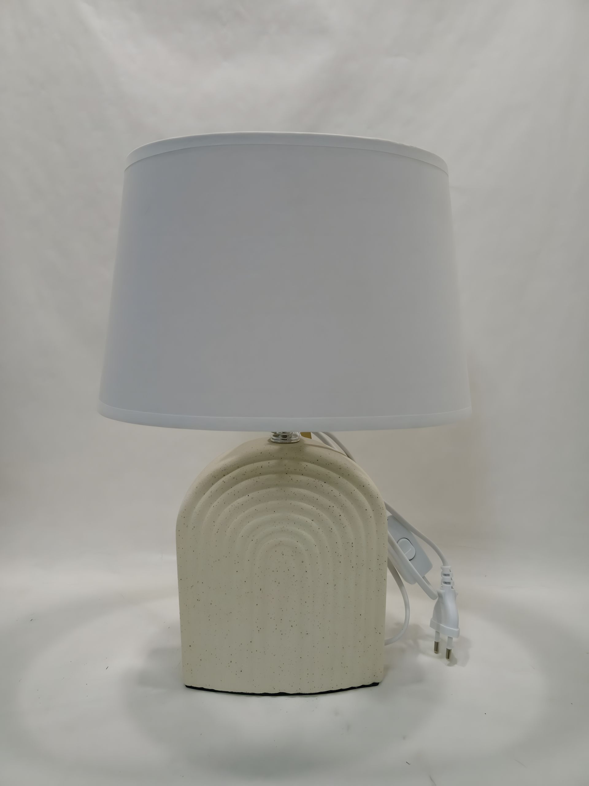 Матеріал: керамічний каркас та текстильний абажур білого кольору.