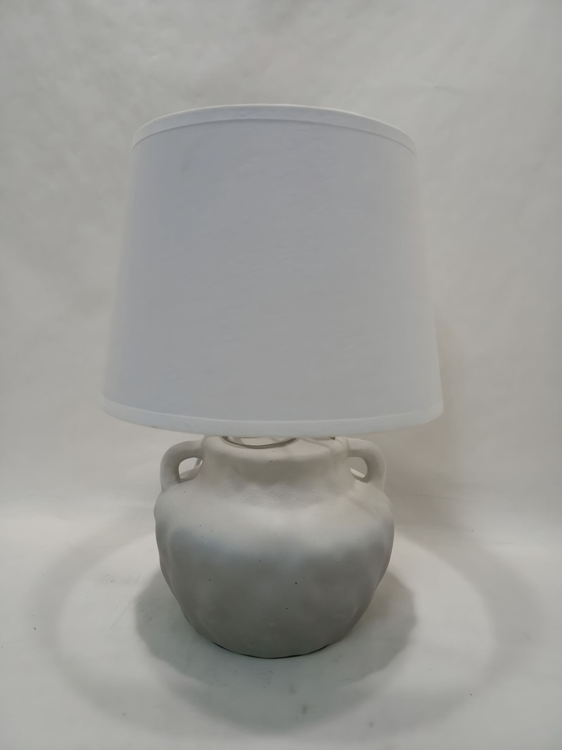 Матеріал: керамічний каркас сірого кольору та текстильний абажур.