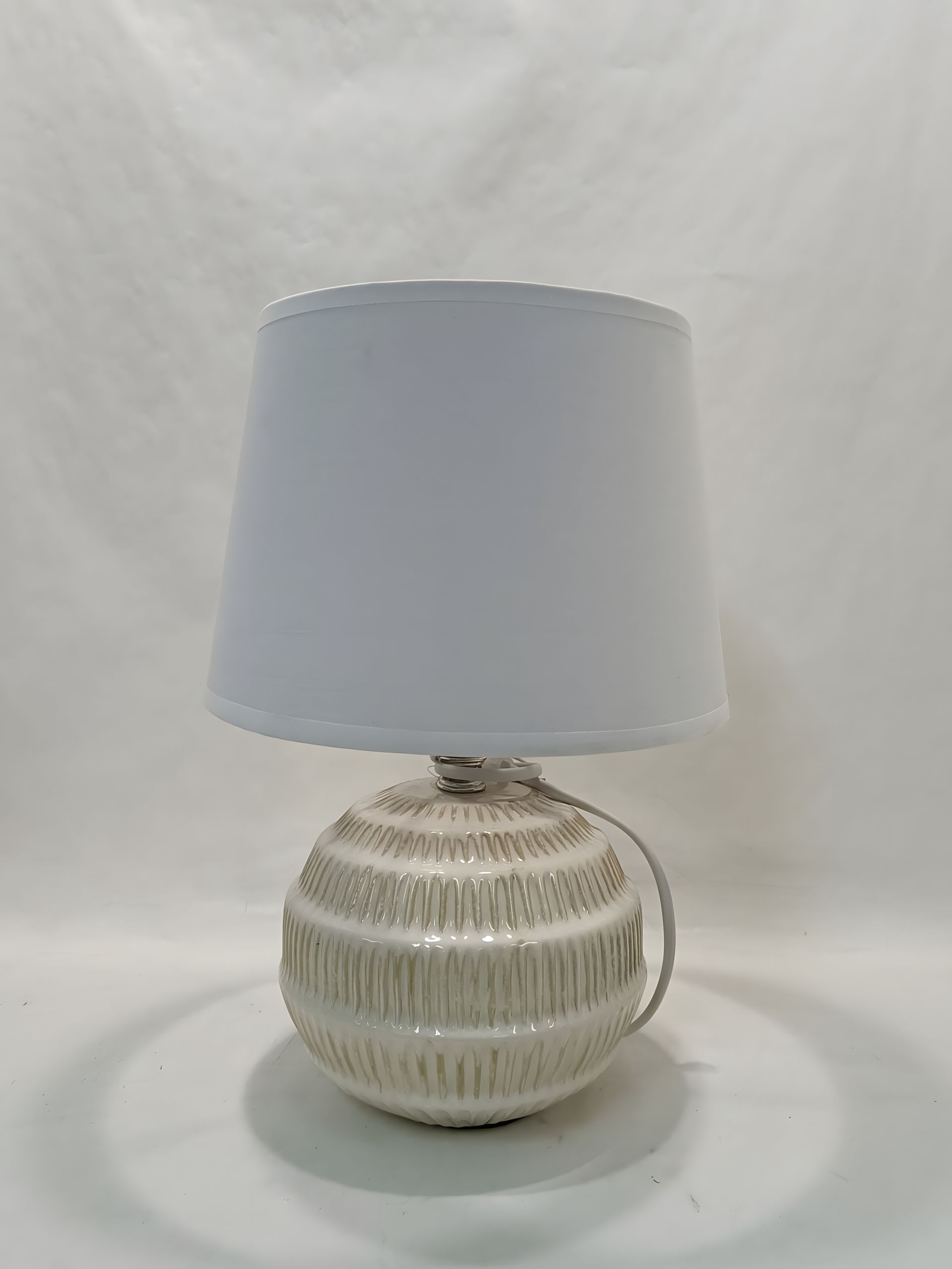 Лампа оснащена цоколем E14, що дозволяє використовувати енергоощадні або світлодіодні лампочки, забезпечуючи комфортне та м’яке освітлення. Текстильний абажур рівномірно розсіює світло, додаючи приміщенню тепла та гармонії.