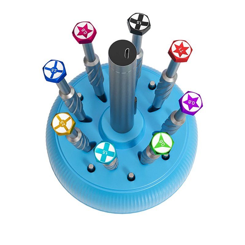 - Вбудовані магніти надійно утримують викрутки та насадки, запобігаючи їх випаданню при обертанні.