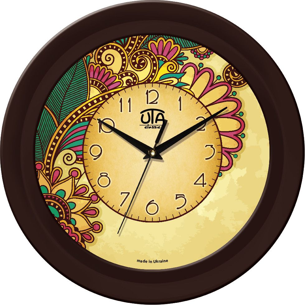 Настінний годинник круглий 350x350x45 мм [mdf, пластик, під склом] uta-10-fbr коричневий
