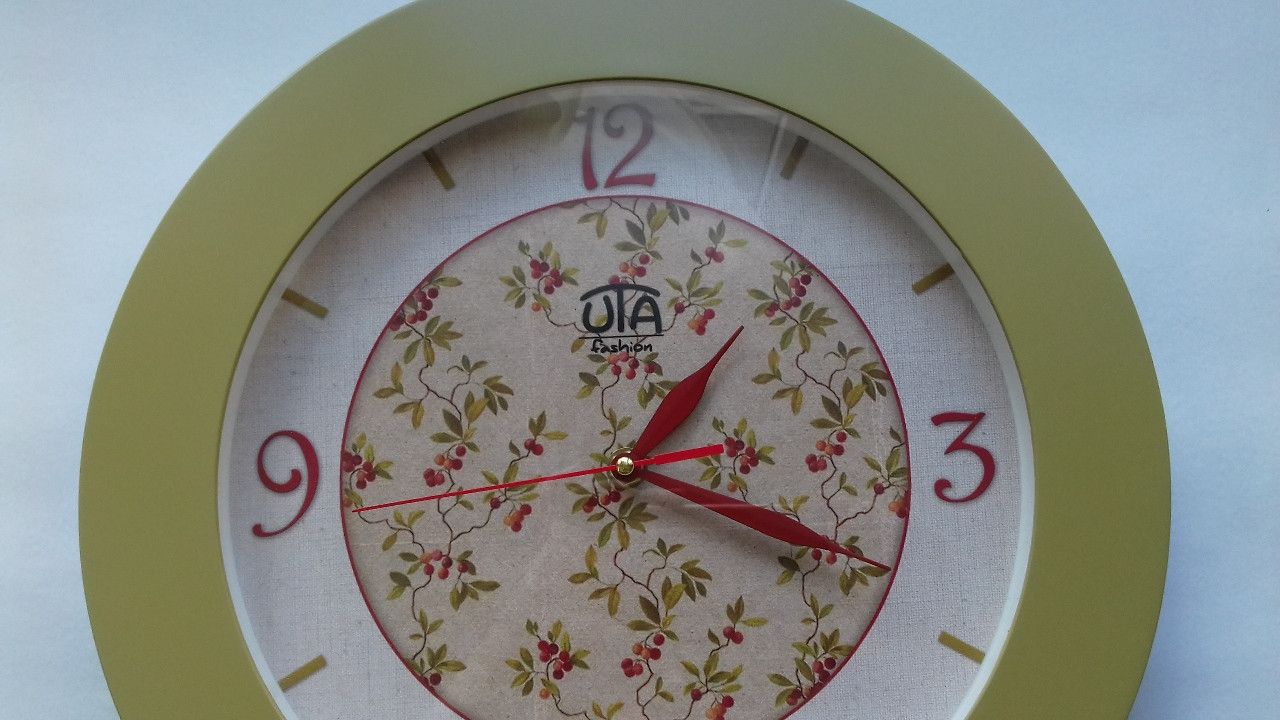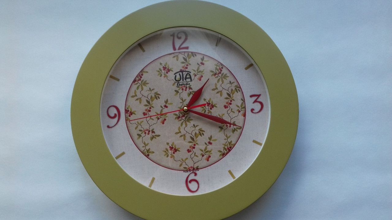 Годинники настінних стінок 350x350x45 мм [MDF, пластик, під склом] uta-08-fo світло-зелений