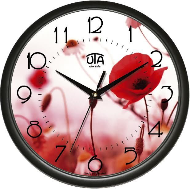 Настінний годинник (30 см) "маки" UTA-01-B-44 Чорний