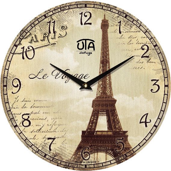 Настінний годинник UTA "Vintage" (33 см) 010 VT "Франція" - Вони мають круглу форму, діаметр 33 см, товщина 2,7 см, вага 0,6 кг.