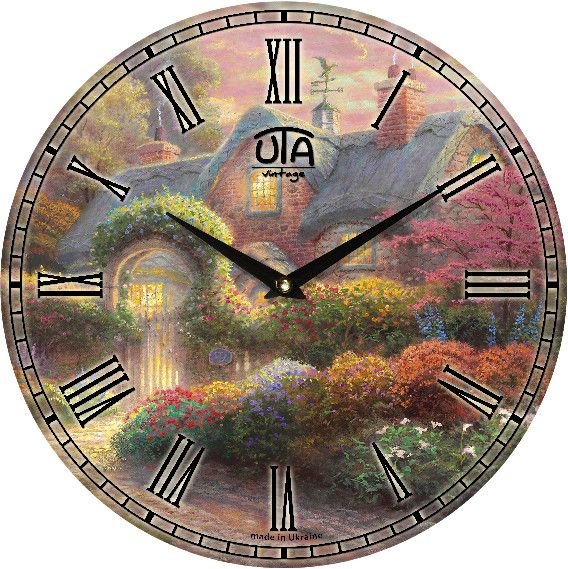 Настінний годинник UTA "Vintage" (33 см) 022 ВП "Літній пейзаж" - Вони мають круглу форму, діаметр 33 см, товщина 2,7 см, вага 0,6 кг.