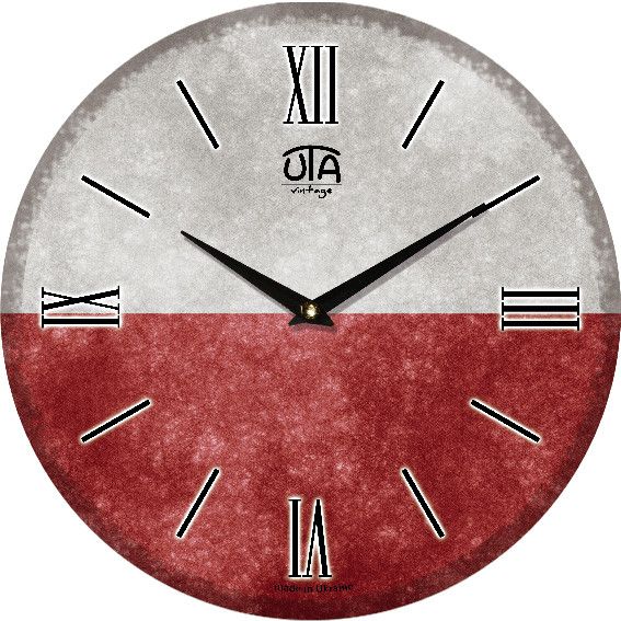 Настінний годинник UTA "Vintage" (33 см) 017 VT "Прапор Польщі" - Вони мають круглу форму, діаметр 33 см, товщина 2,7 см, вага 0,6 кг.