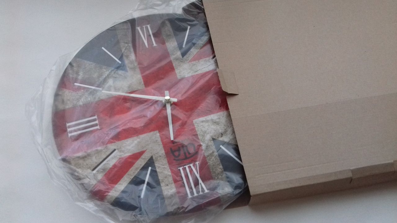 Настінний годинник штату Юта "старовинний" (33 см) 013 VT "Прапор Великобританія" - Вони мають круглу форму, діаметр 33 см, товщина 2,7 см, вага 0,6 кг.