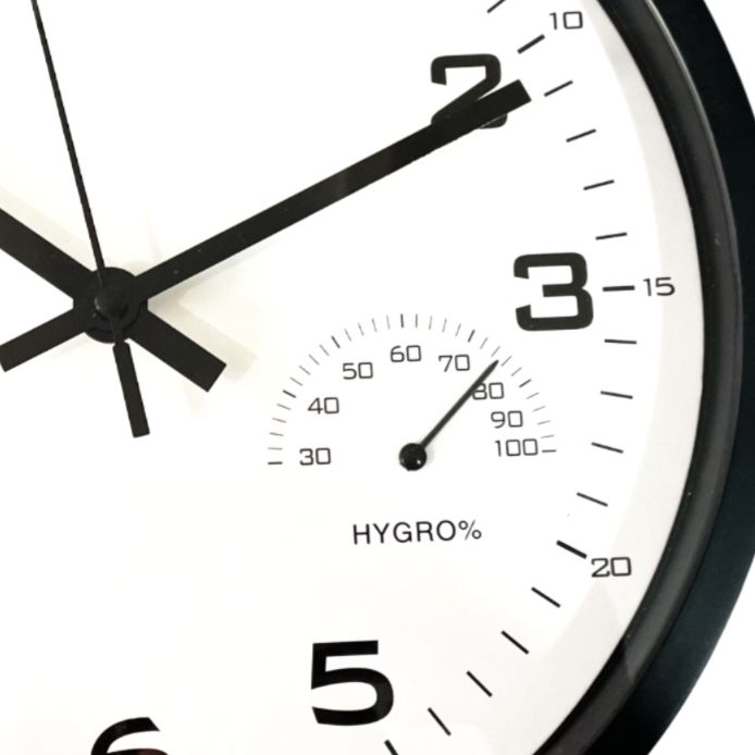 Настінний годинник з термометром та гігрометром Timelike™ (25 см) M-02-B чорний