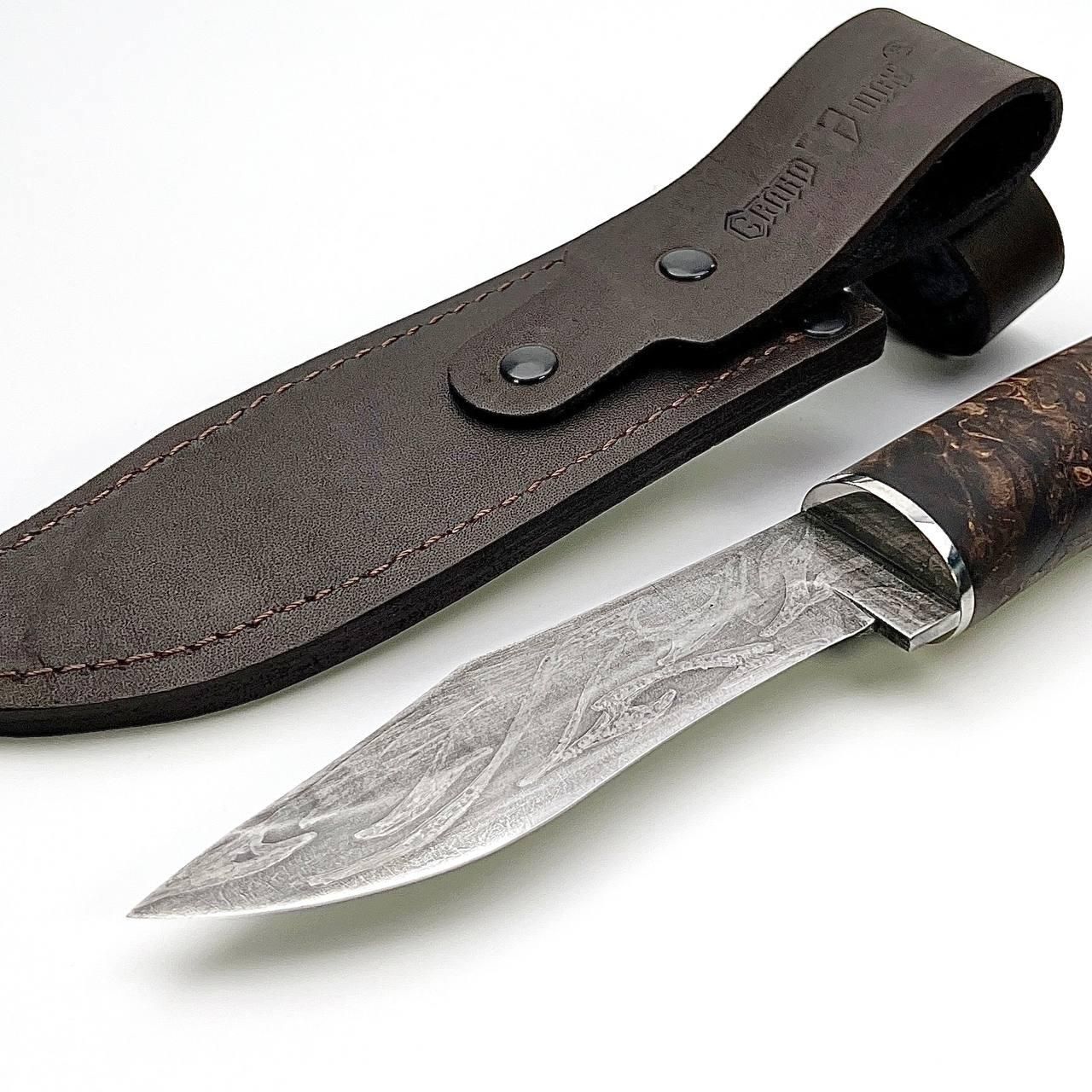 Рукоять з натурального дуба, просочена лляною олією, забезпечує комфортний хват і запобігає ковзанню. Оптимальна довжина леза (105 мм) дозволяє ефективно працювати як з дрібними деталями, так і з великими заготовками.