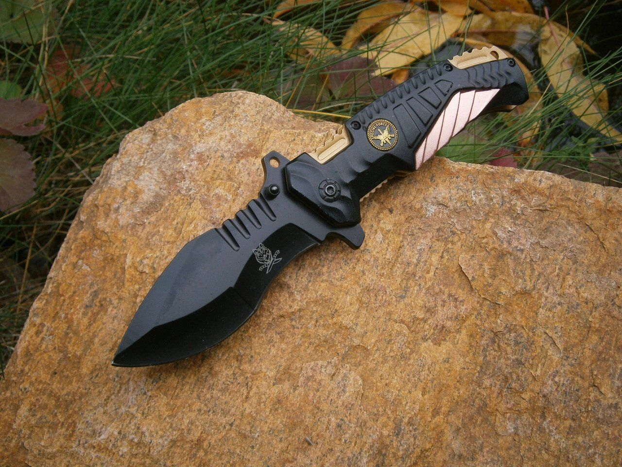 - Механізм замка заснований на плоскій пружині, яка впирається в хвостовик клинка під час відкривання ножа.