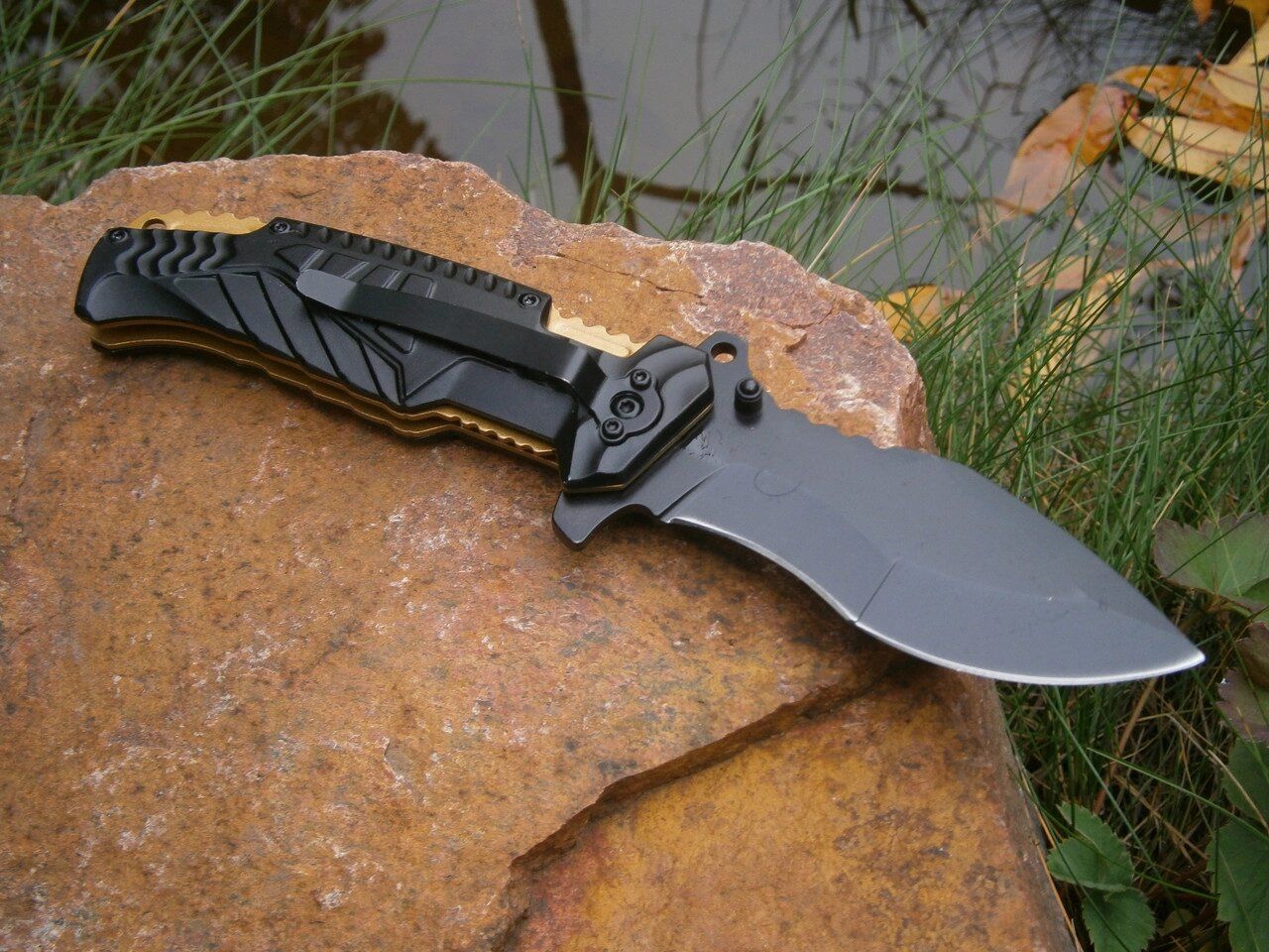 Харизматичний, важкий складник-напівавтомат із замком лайнер-лок, фліппером та клинком у стилі Spear point.