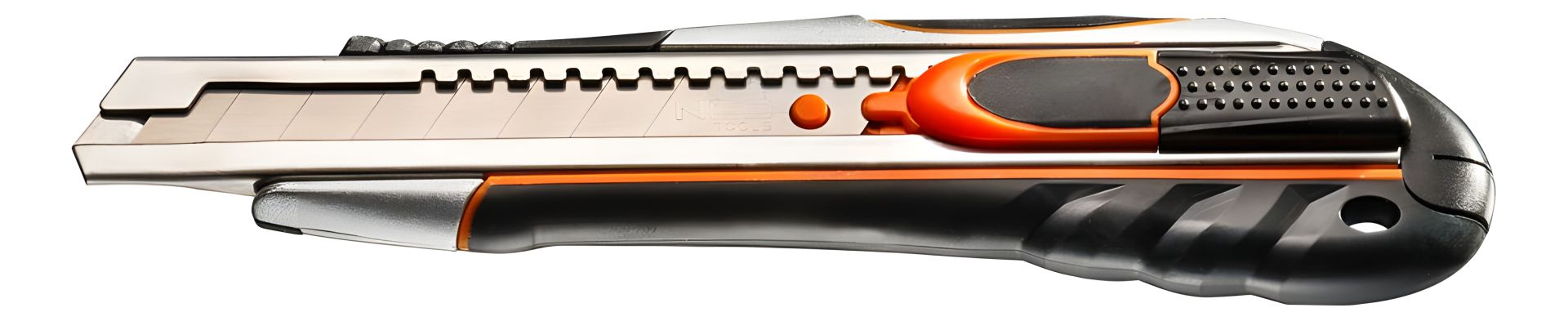 Ніж з лезом, що відламується NEO з функцією швидкого різання і з фіксатором полегшують роботу з інструментом. Металеві напрямні та корпус з цинкового сплаву забезпечують довгий термін служби. Двокомпонентна рукоятка забезпечує безпеку та комфорт під час роботи. Бренд NEO виправдовує очікування фахівців.