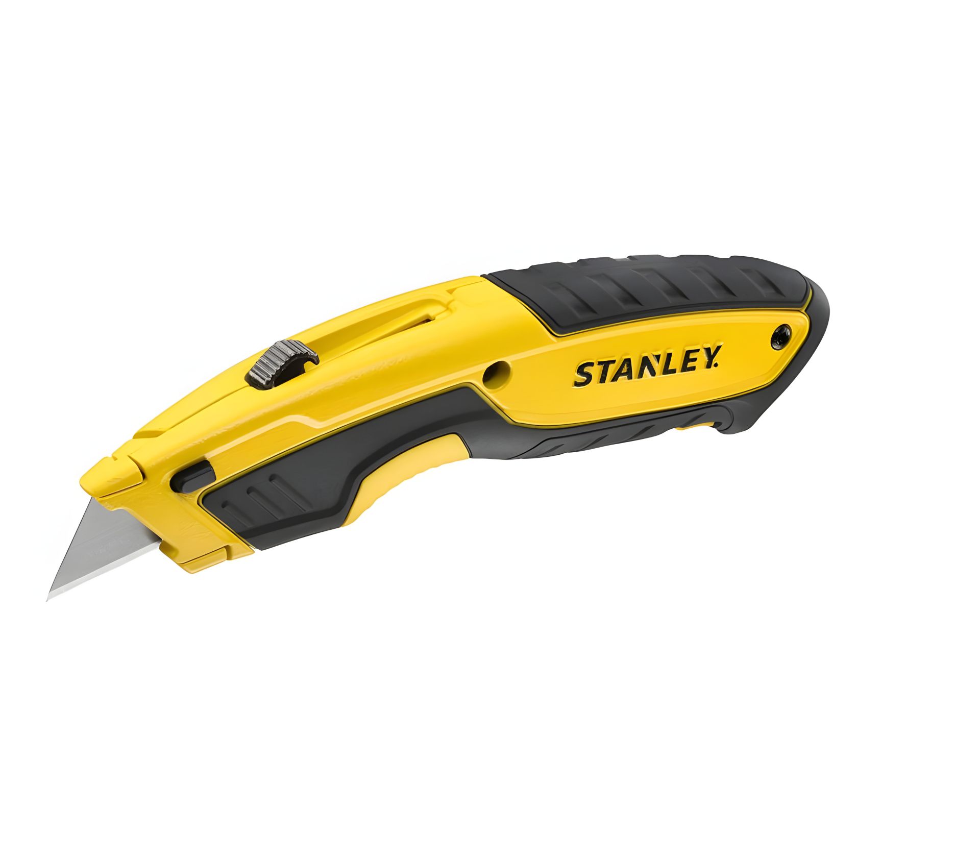 Ніж з висувним лезом трапецеподібним STANLEY: 5 позицій, в металевому корпусі + 3 леза