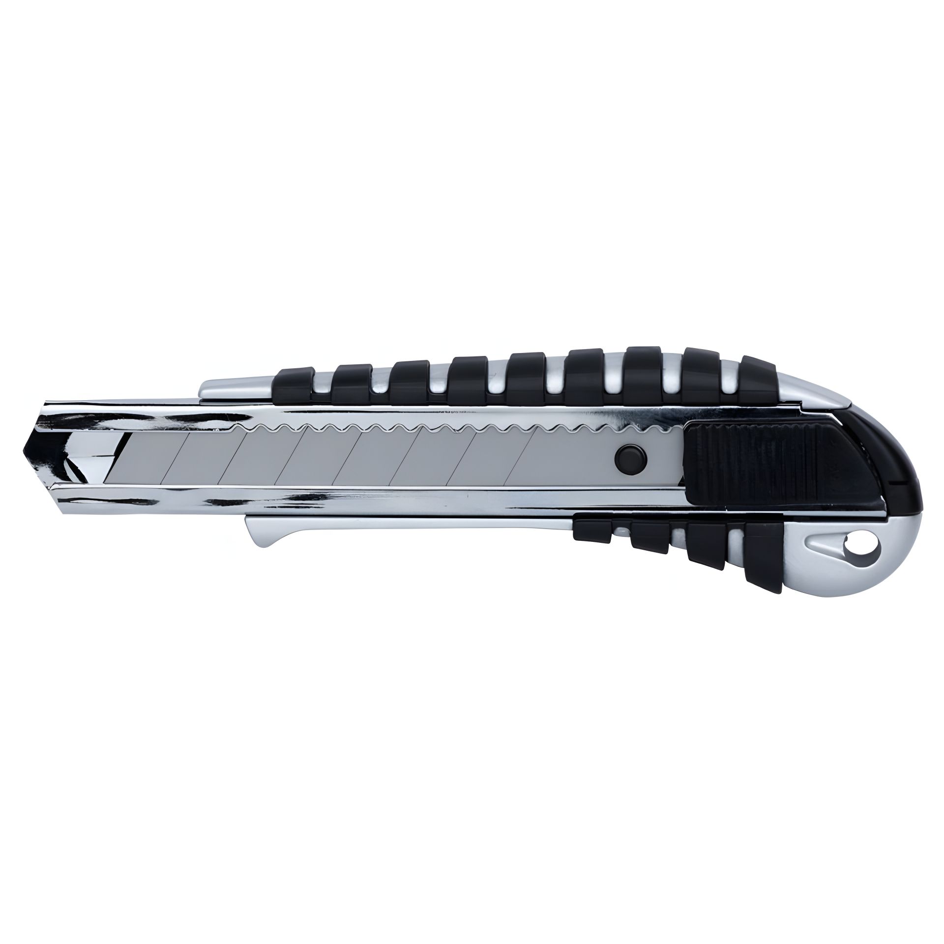 Ніж будівельний (корпус метал/гума) 18мм лезо автоматичний замок SIGMA (8211041) призначений для розрізання із застосуванням значних зусиль різних матеріалів: килимових покриттів, картону, тканини, паперу.