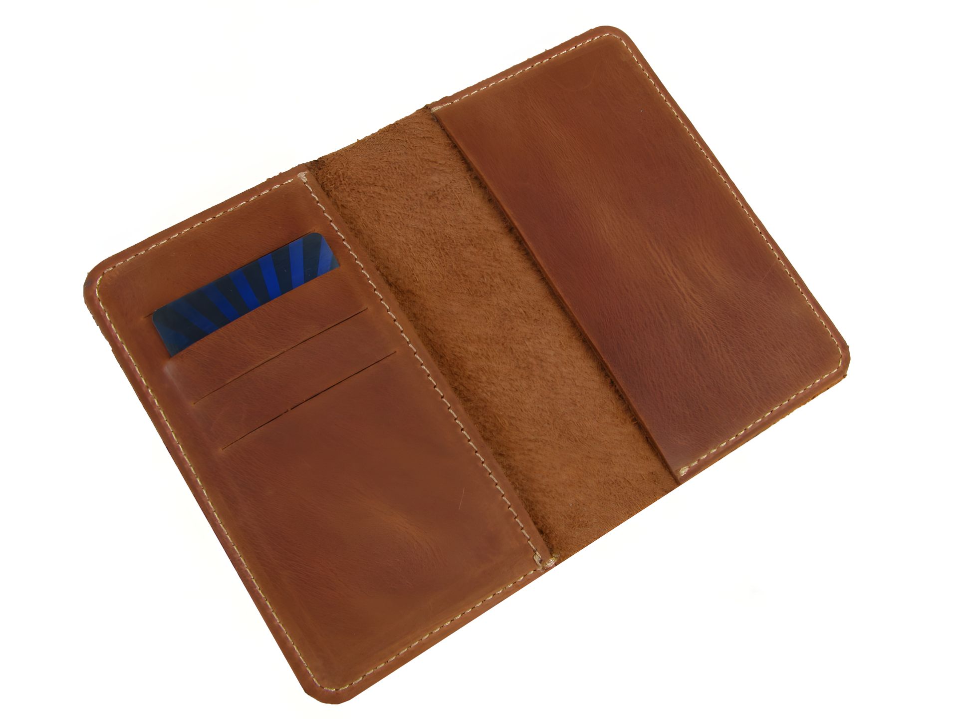 Шкіряна обкладинка для паспорта рудого, коньячного кольору.