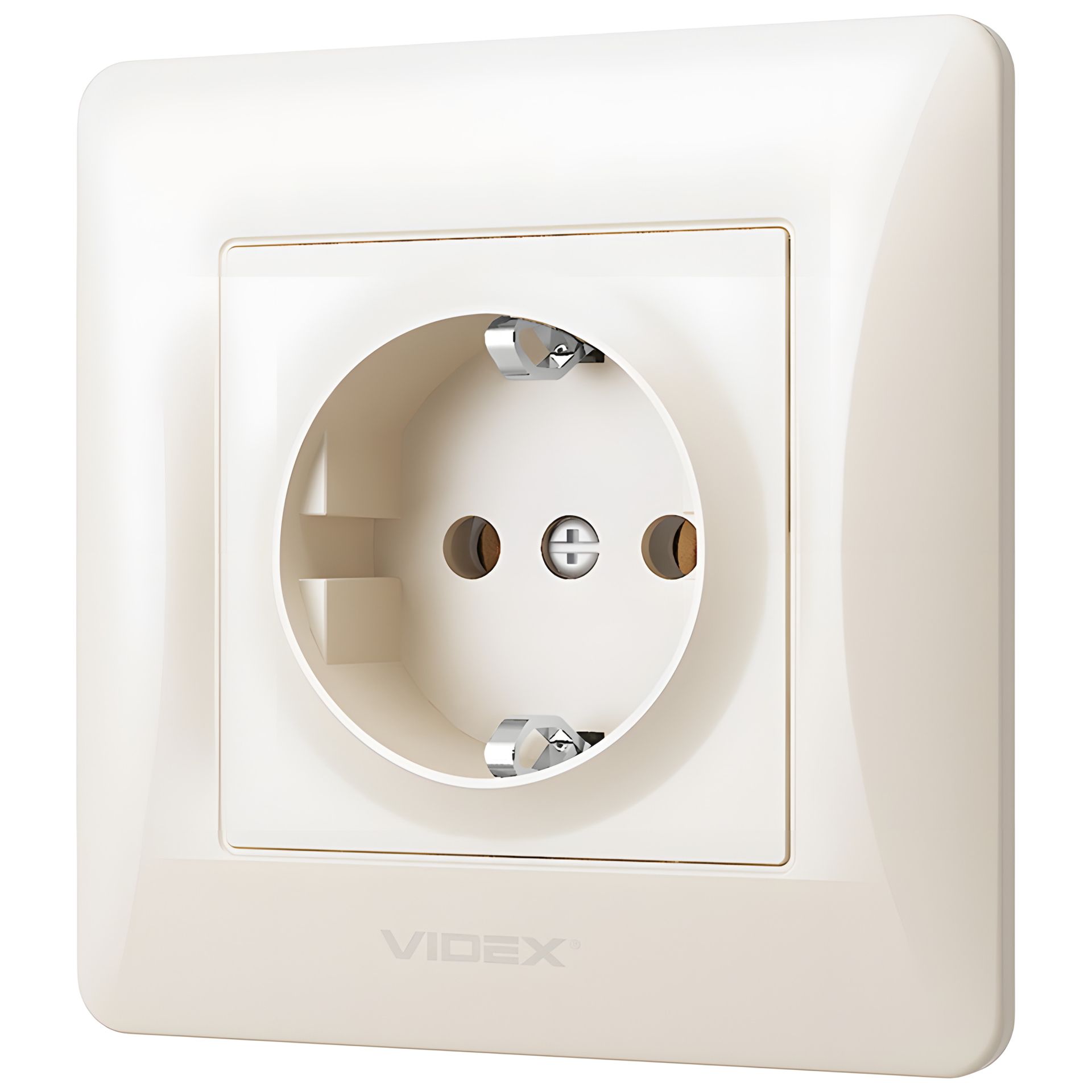 Розетка із заземленням і підвищеною вогнетривкістю VIDEX BINERA VF-BNSK1G-CR кремова