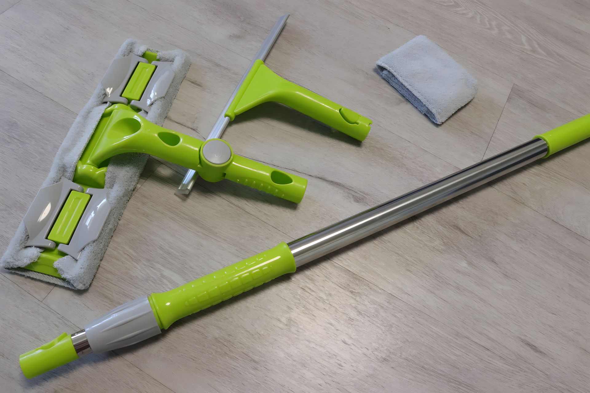 Швабра для мытья окон с поворотом на 180 градусов. Моющий элемент из микрофибры, которая крепится на зажимах. Тряпочку из микрофибры можно снять, постирать, а при необходимости - заменить на новую (есть в комплекте) либо на любую другую ветошь, просто вырезав ее под нужный размер. Съемный скребок можно использовать как вместе со шваброй, как отдельный элемент, так и прикрепив его на рукоятку.