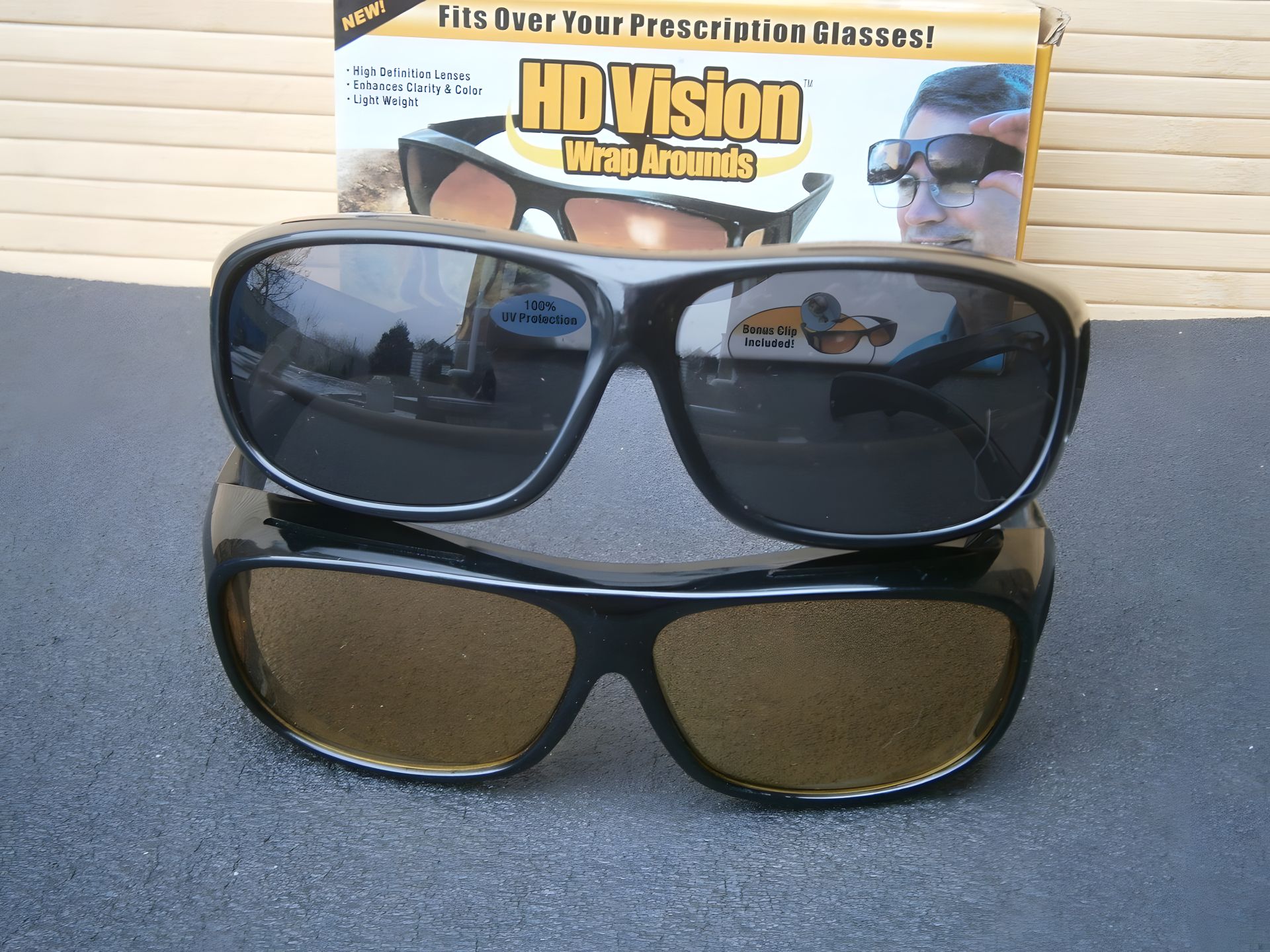 Величезним плюсом цих автомобільних захистних окулярів є те, що їх можна надіти на звичайні окуляри з діоптріями. Це завжди була проблема, доводилося знімати окуляри та надягати сонцезахисні, але при цьому погіршувався огляд дороги. Тепер цю проблему вирішено, конструкція HD Vision дозволяє надіти їх зверху діопрієвих окулярів.