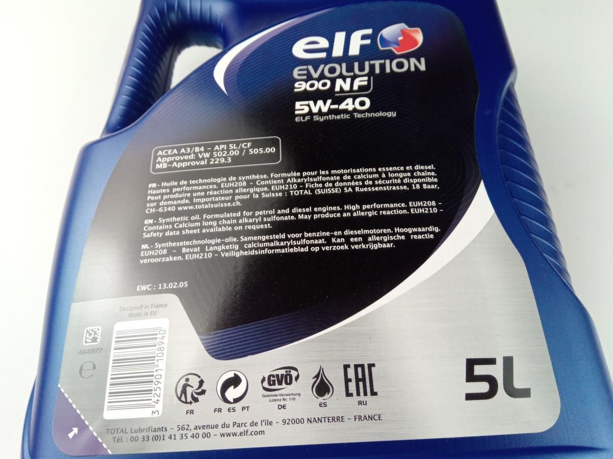 Олива моторна 5W-40 синтетична ELF Evolution 900 NF 5 л. (216651) (194872)